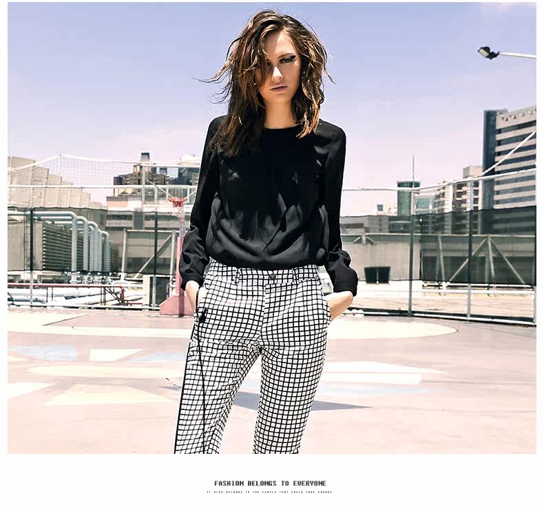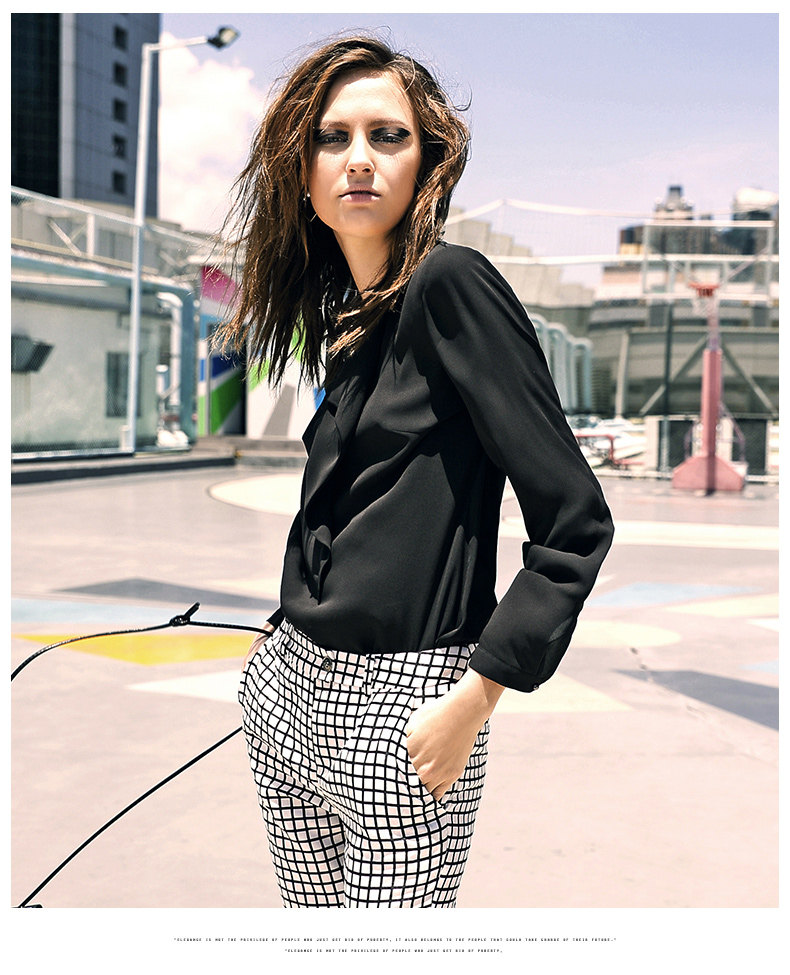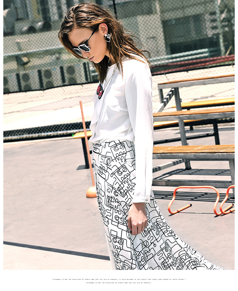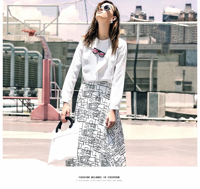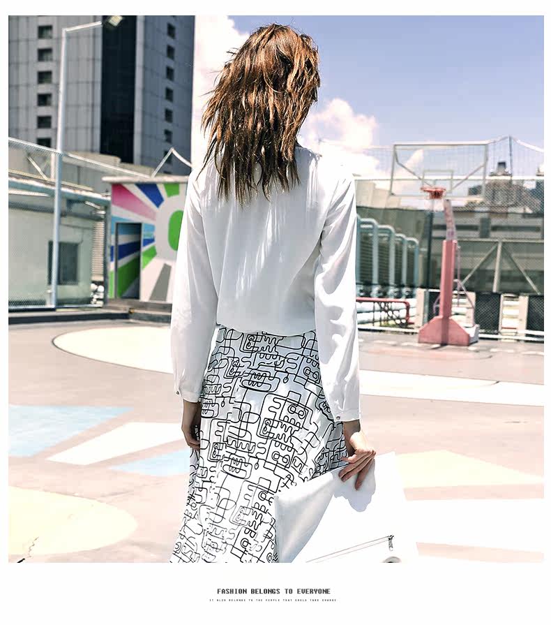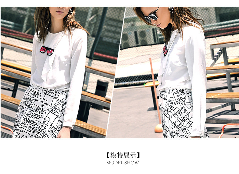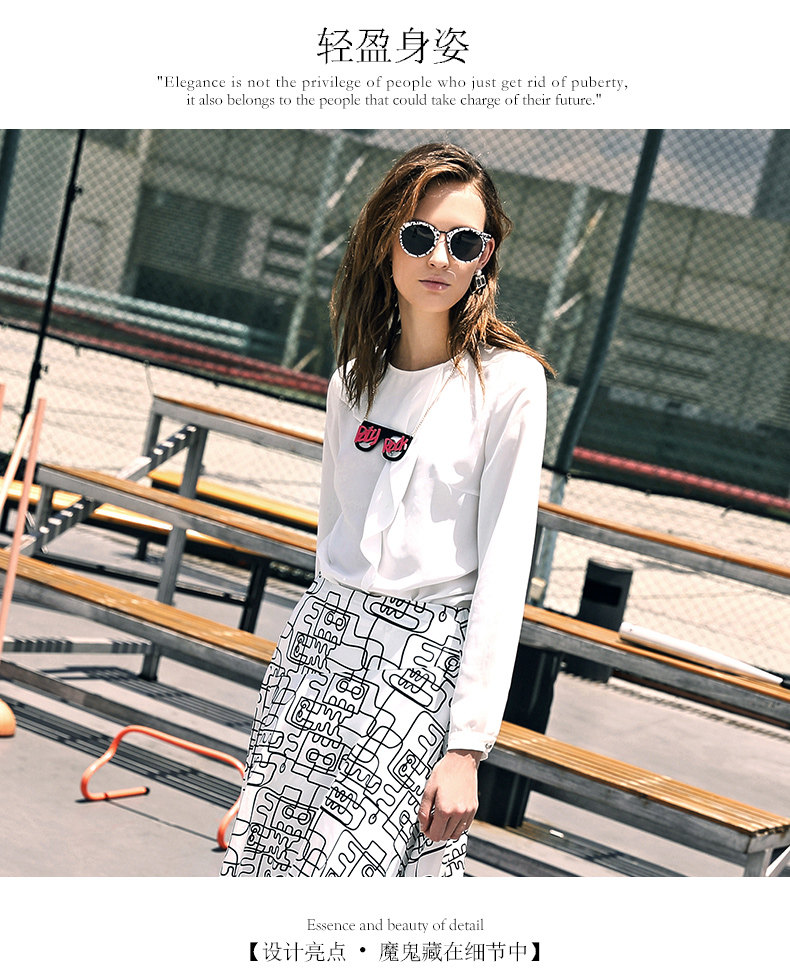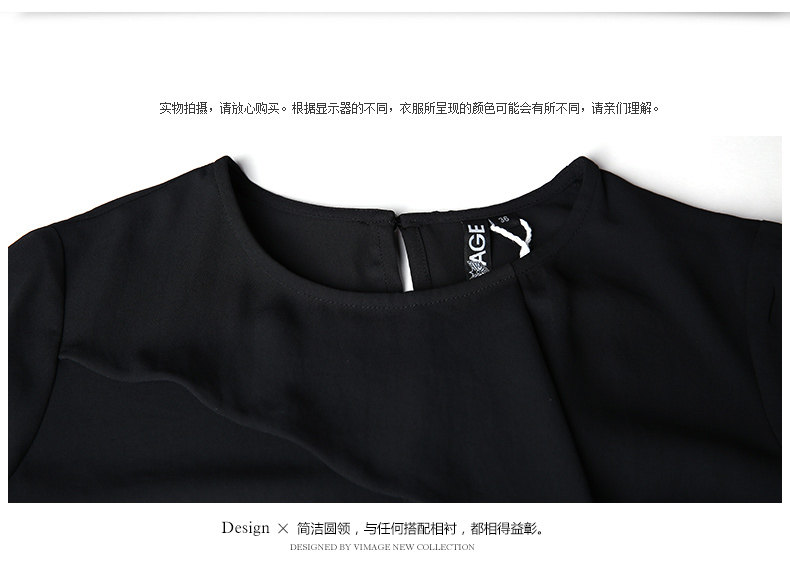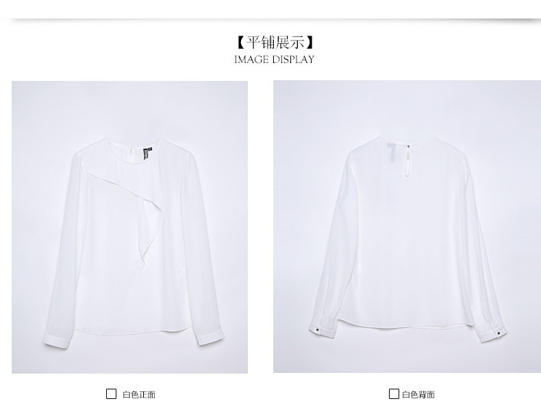 VIMAGE纬漫纪女上衣宽松百搭白色圆领长袖雪纺衫女V309095