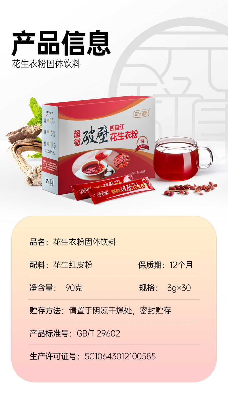 1舒元康破壁花生衣粉精选花生红衣红皮血小板花生衣粉