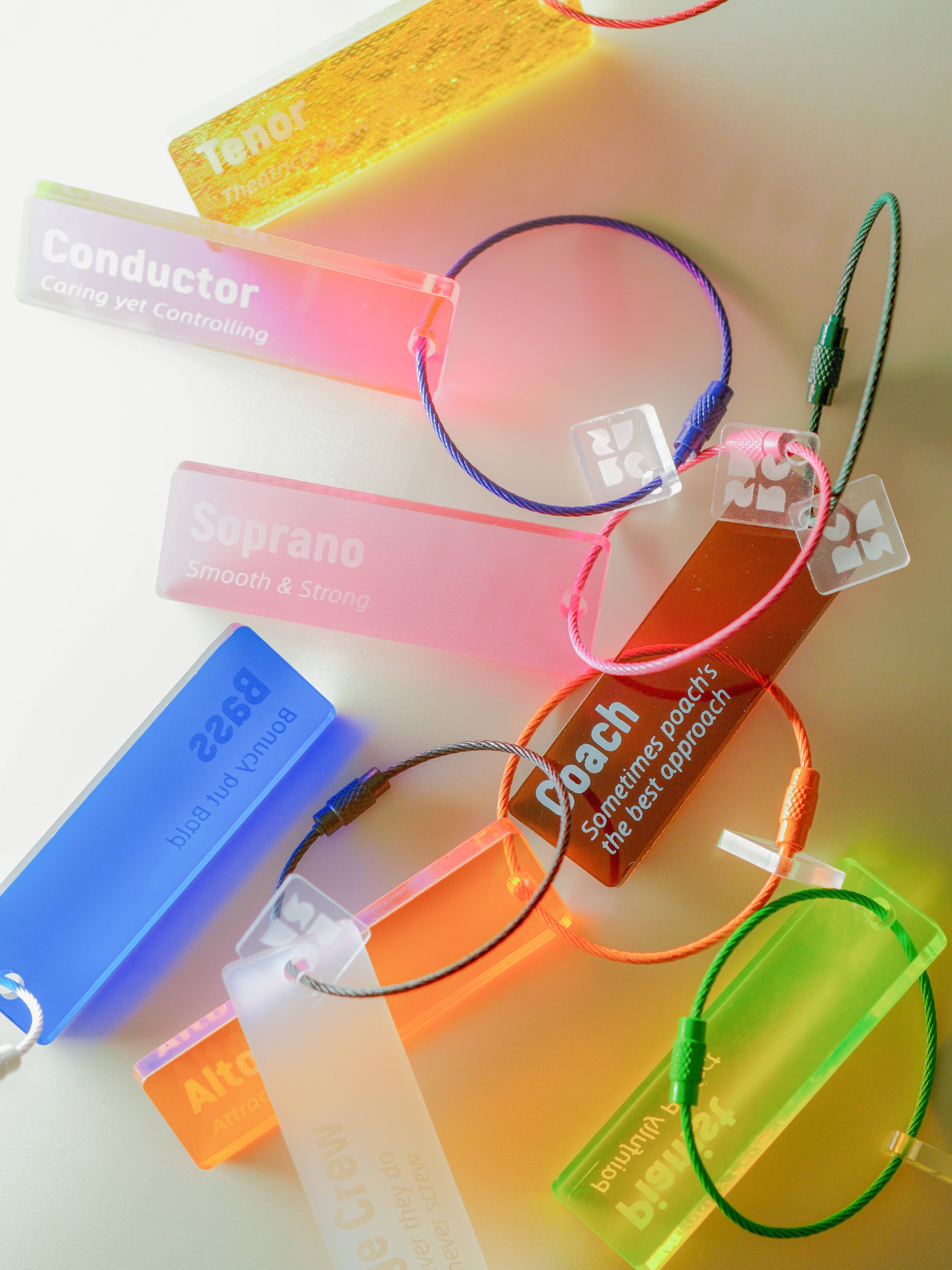 每个部门各司其职才能彼此成就,缺一不可,彩虹合唱团台前幕后的每一个角色都拥有对应的专属挂件,每个角色都拥有姓名。