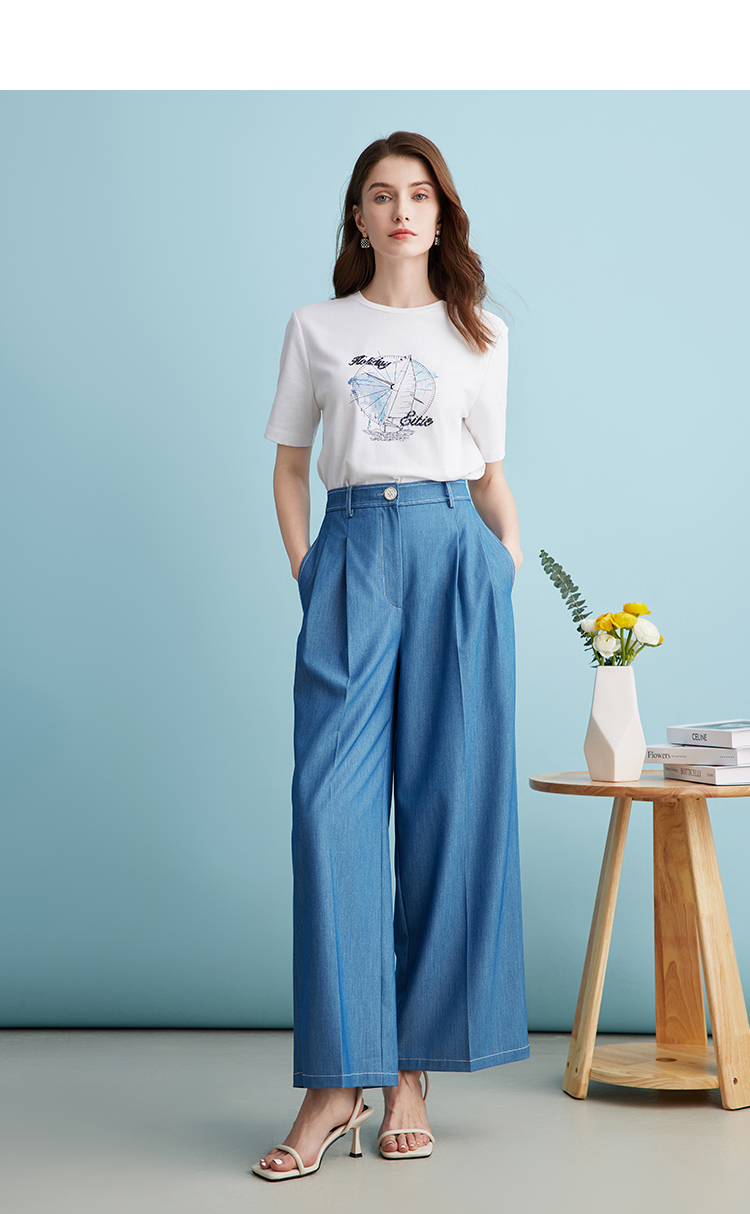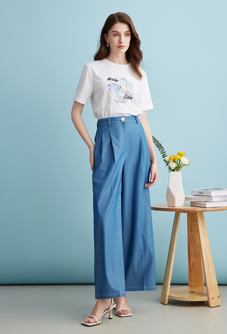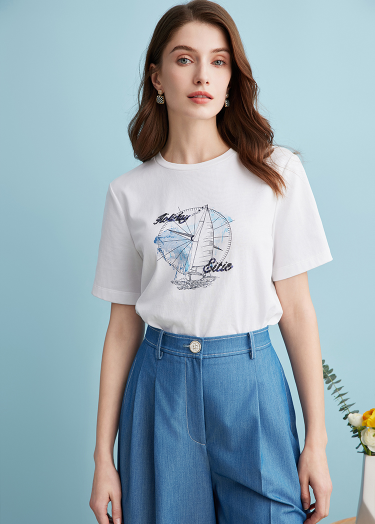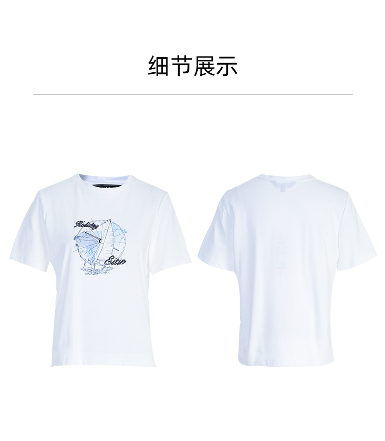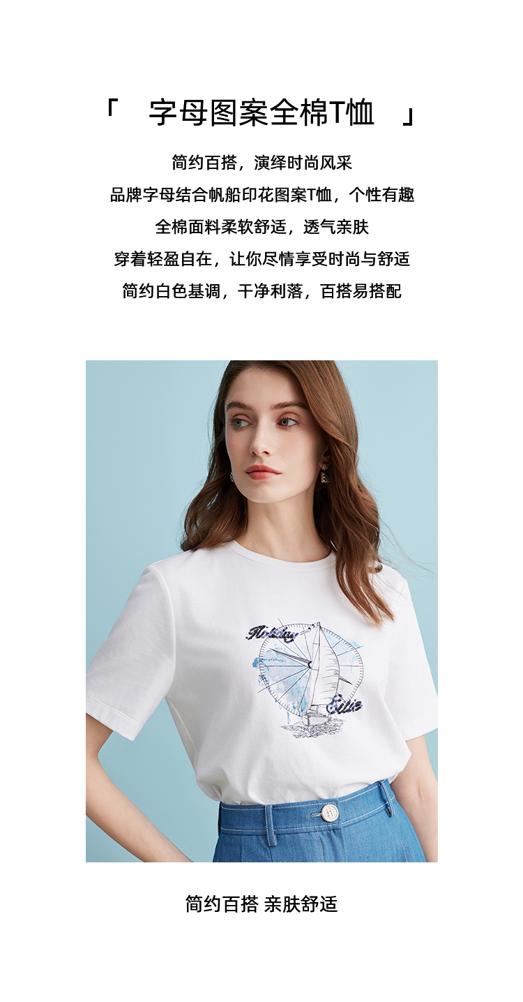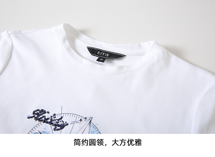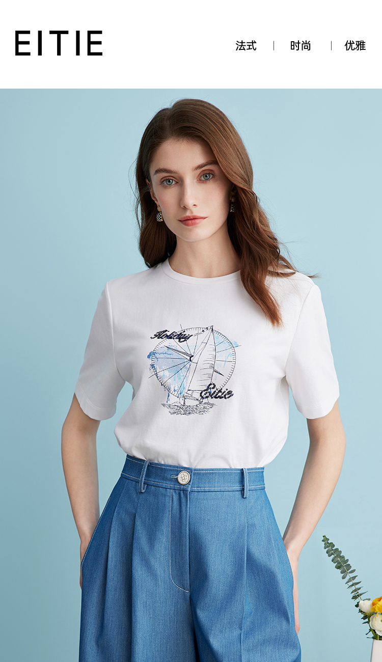EITIE爱特爱夏季新款简约百搭显瘦柔软印花T恤上衣B2402306