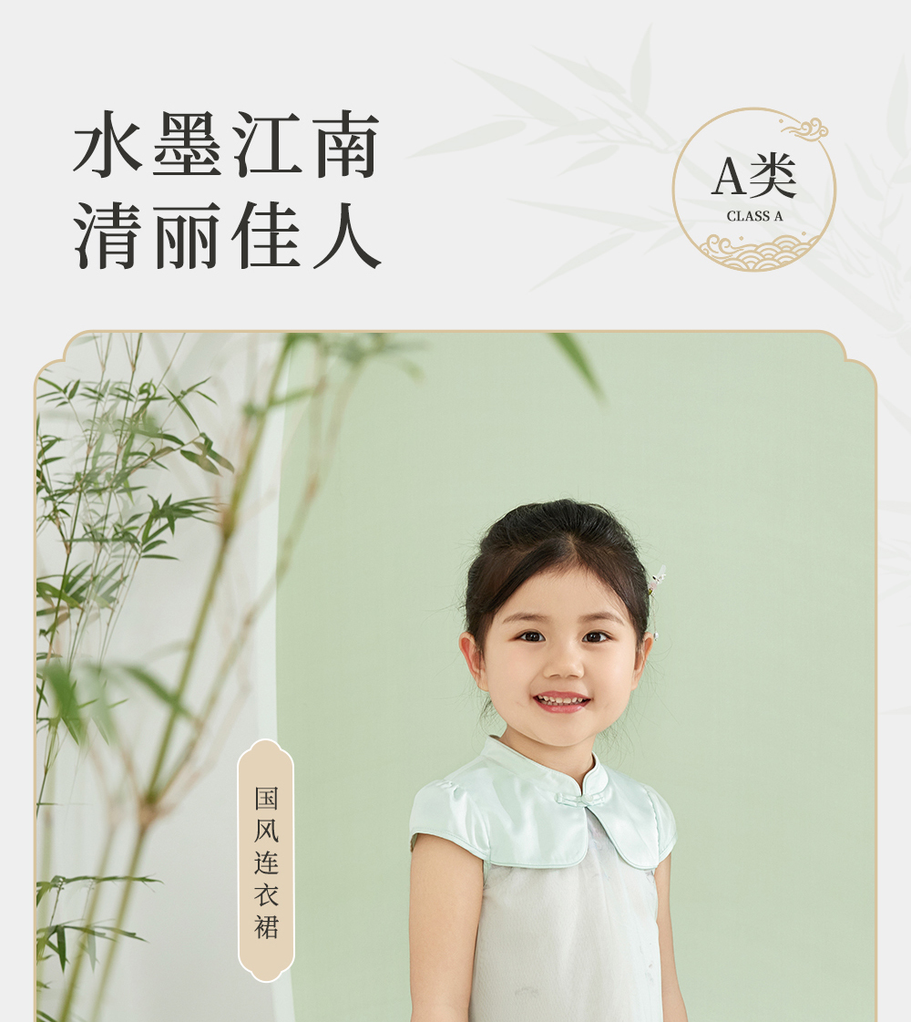 【商场同款】英氏儿童公主裙国风女童短袖连衣裙新中式裙子