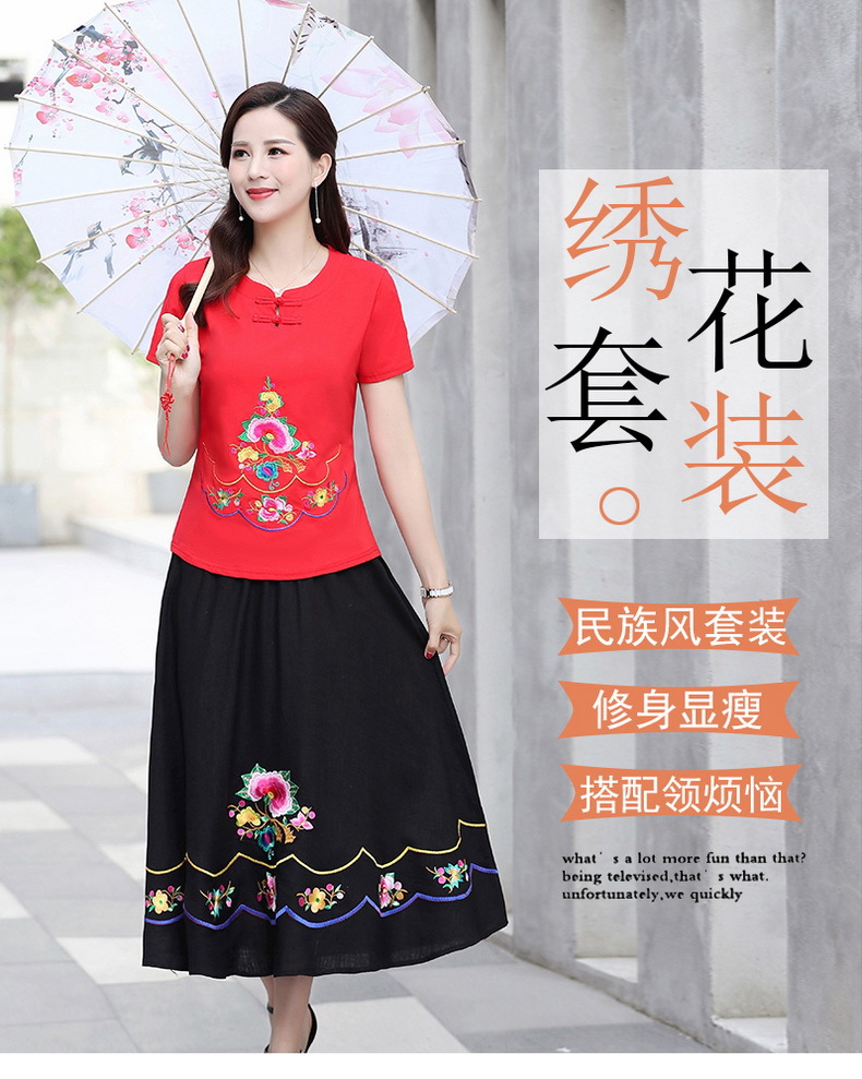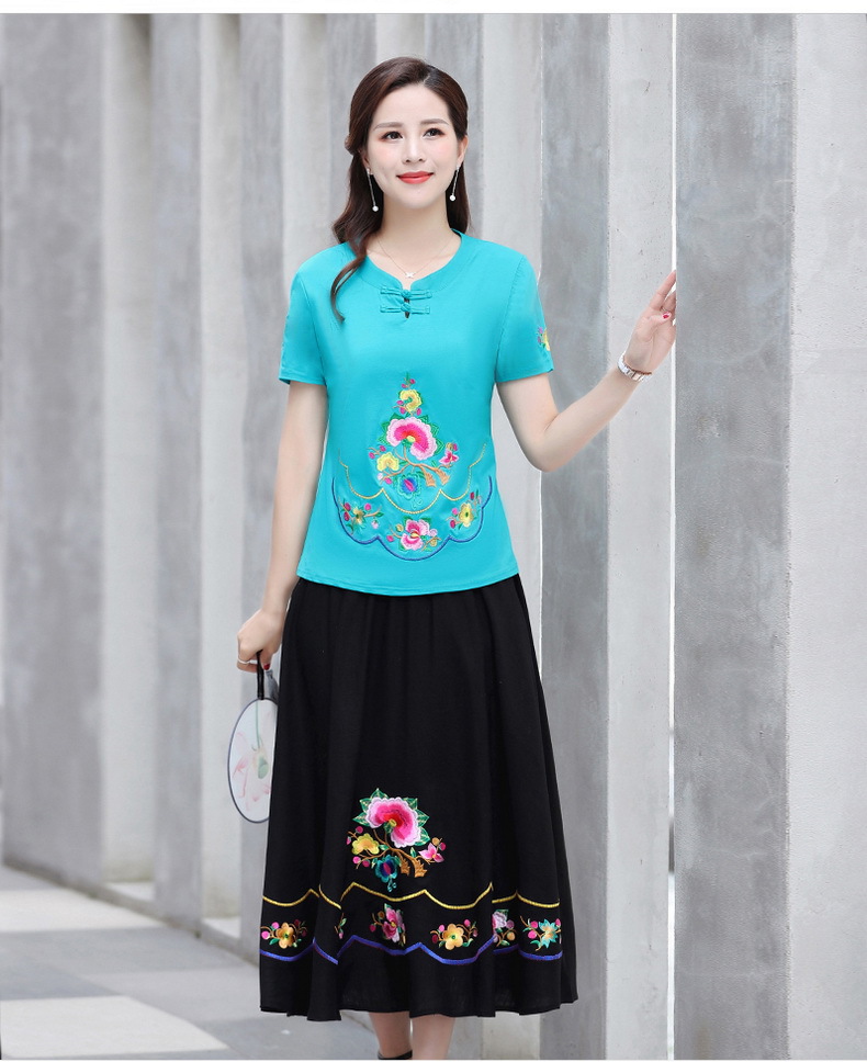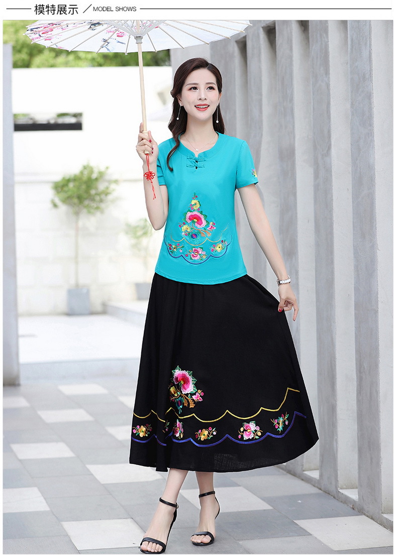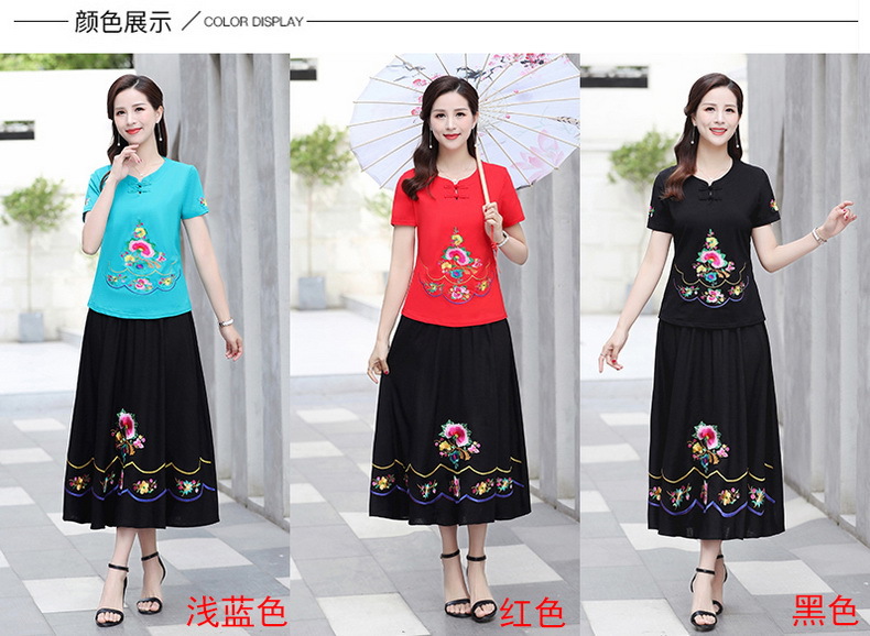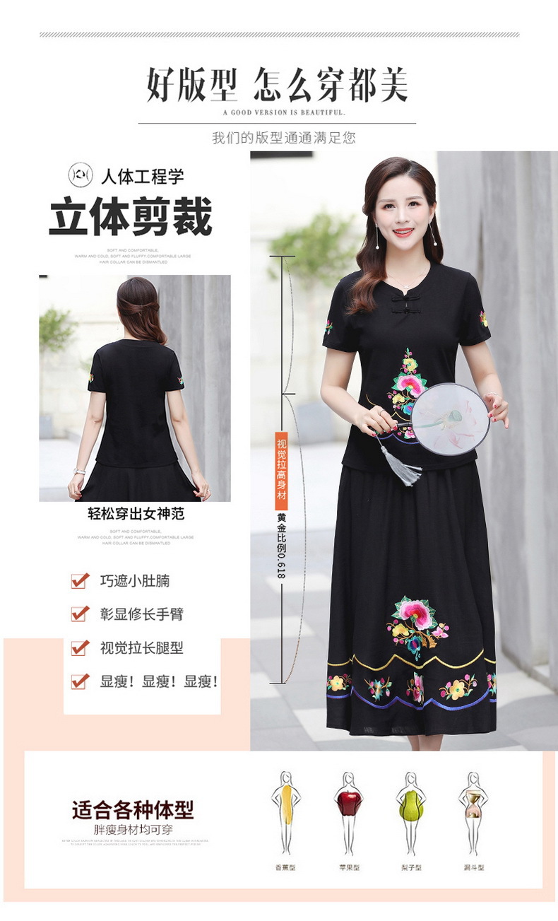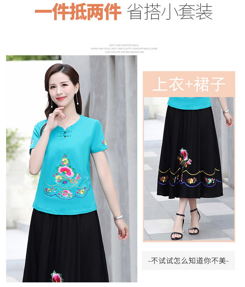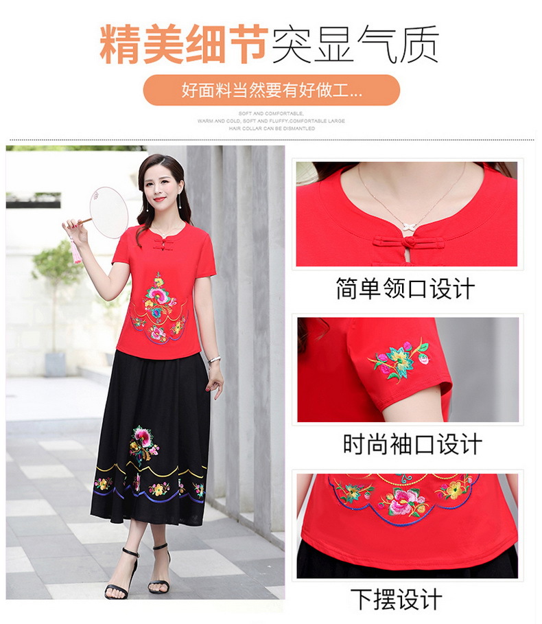 MQ-SLQ2080夏新款复古文艺改良旗袍短袖T恤唐装两件套YY