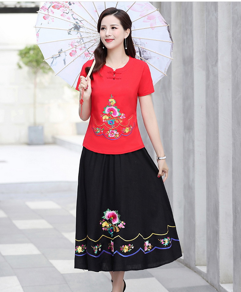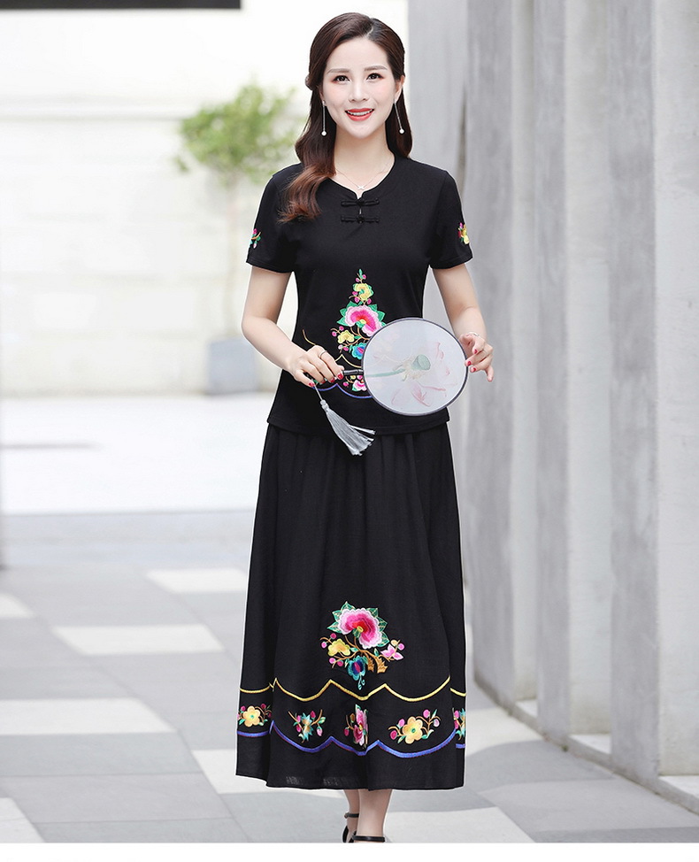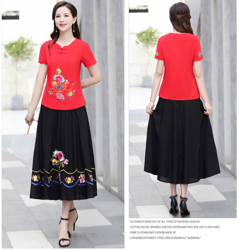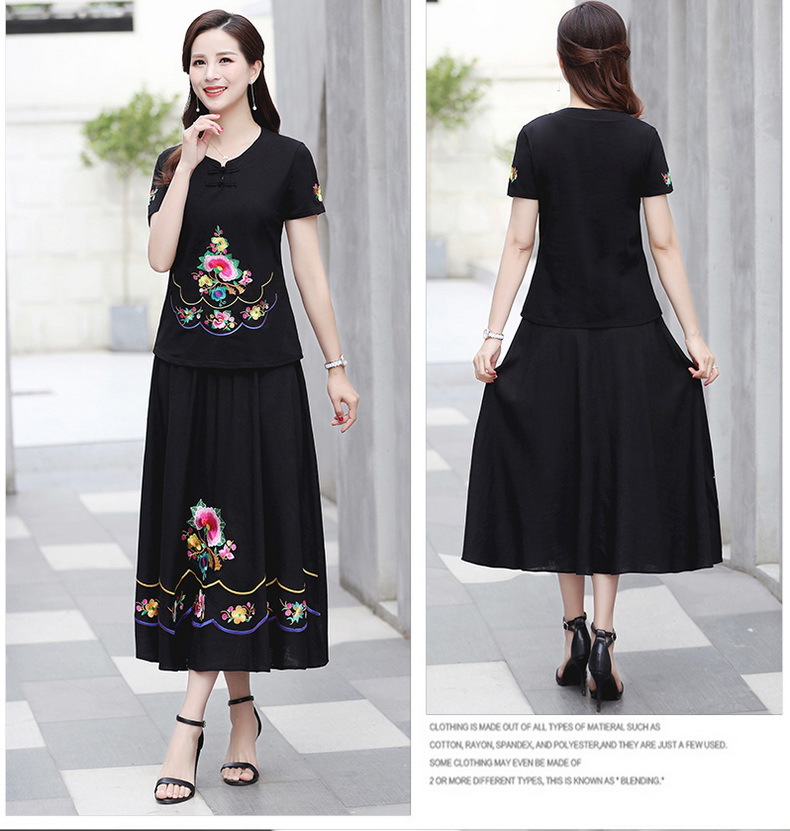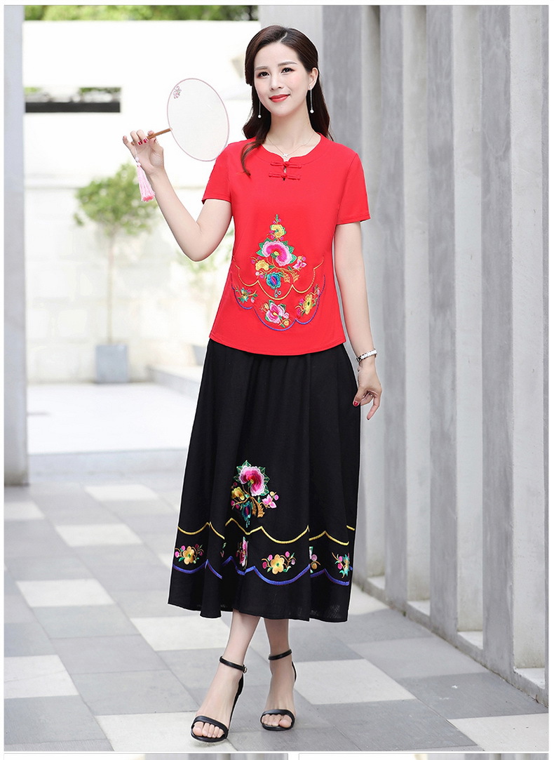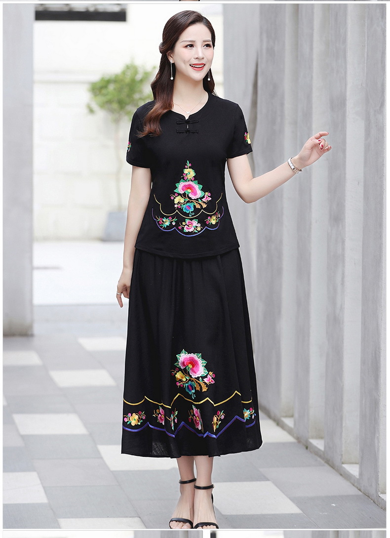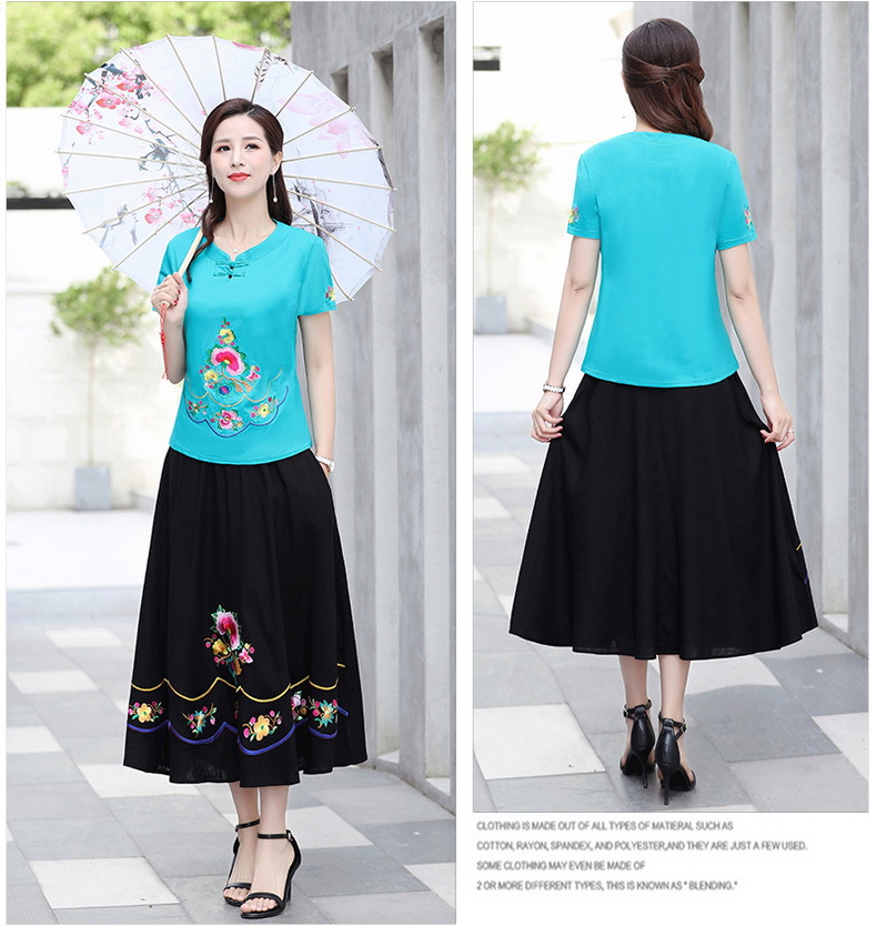 MQ-SLQ2080夏新款复古文艺改良旗袍短袖T恤唐装两件套YY