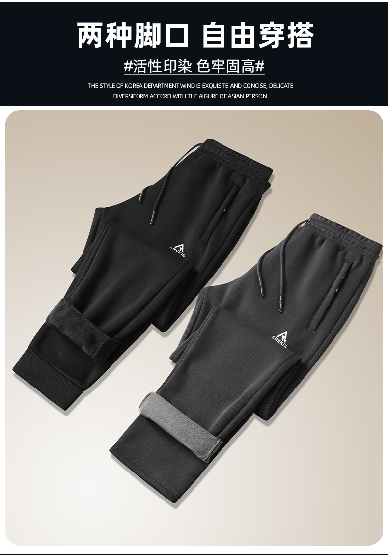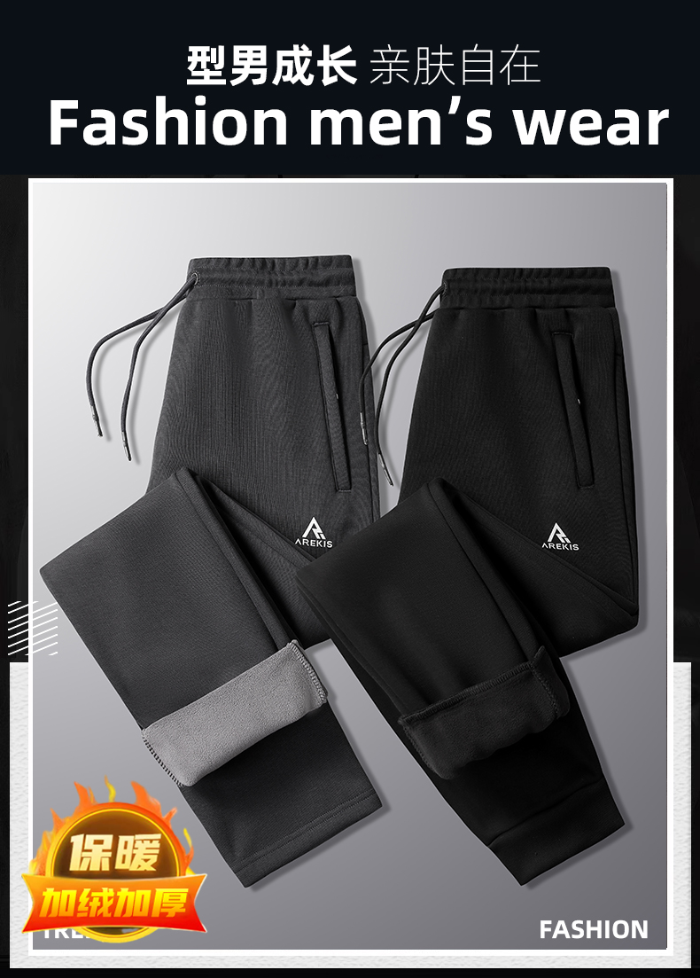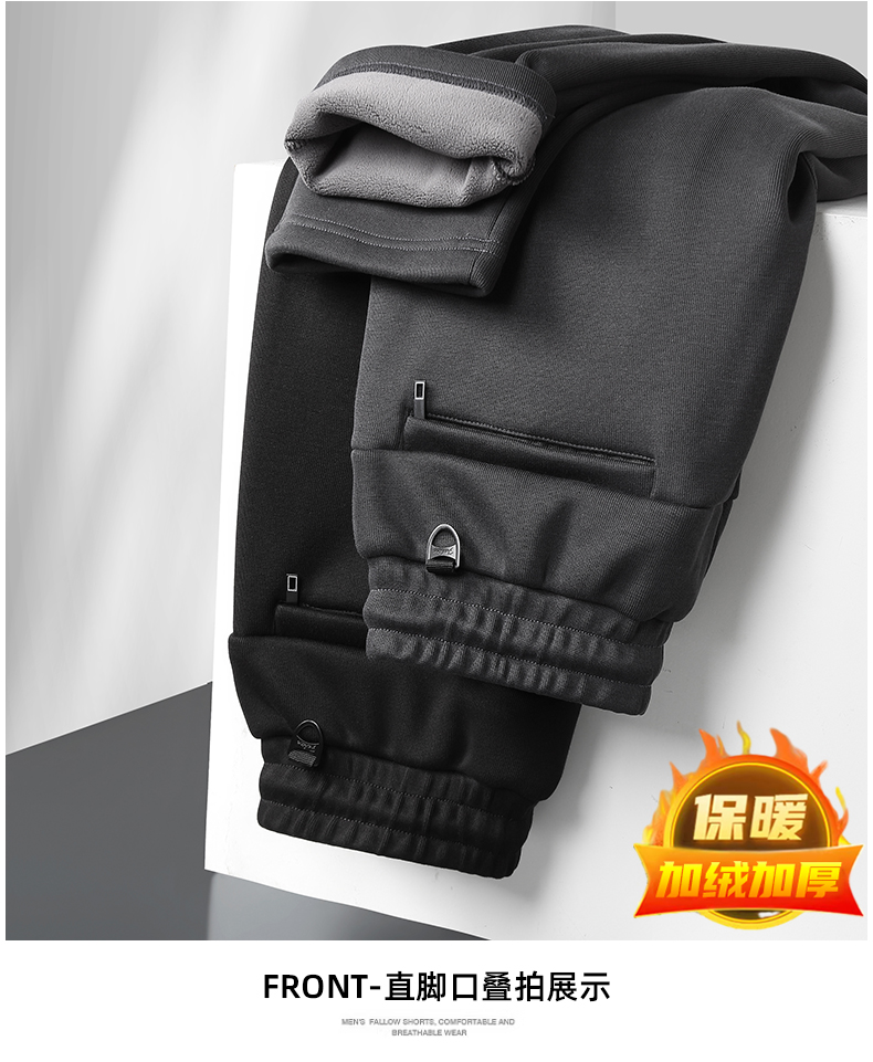【一口价】【新款DK】大依优型大码加绒直口束口休闲裤松紧腰加肥加大宽松舒适运动裤男装裤子长裤