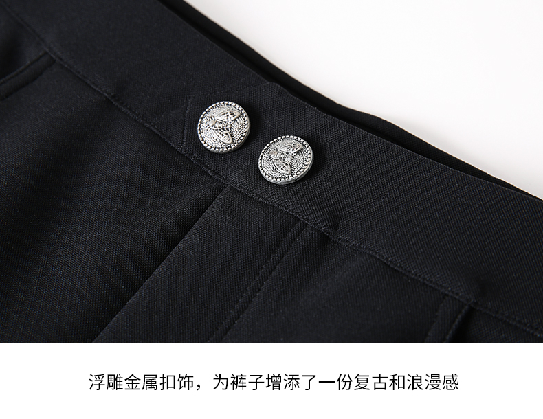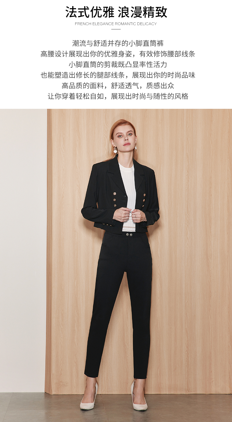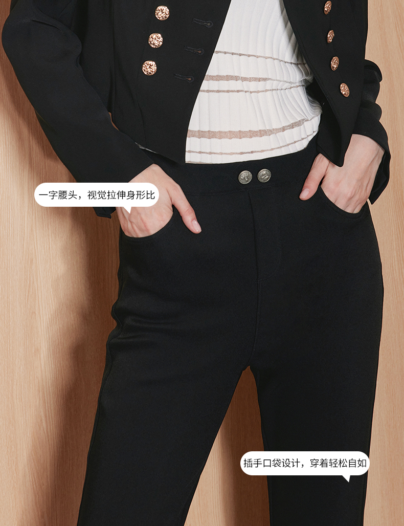 EITIE爱特爱秋季新款高腰通勤纯色显瘦裤子7105819