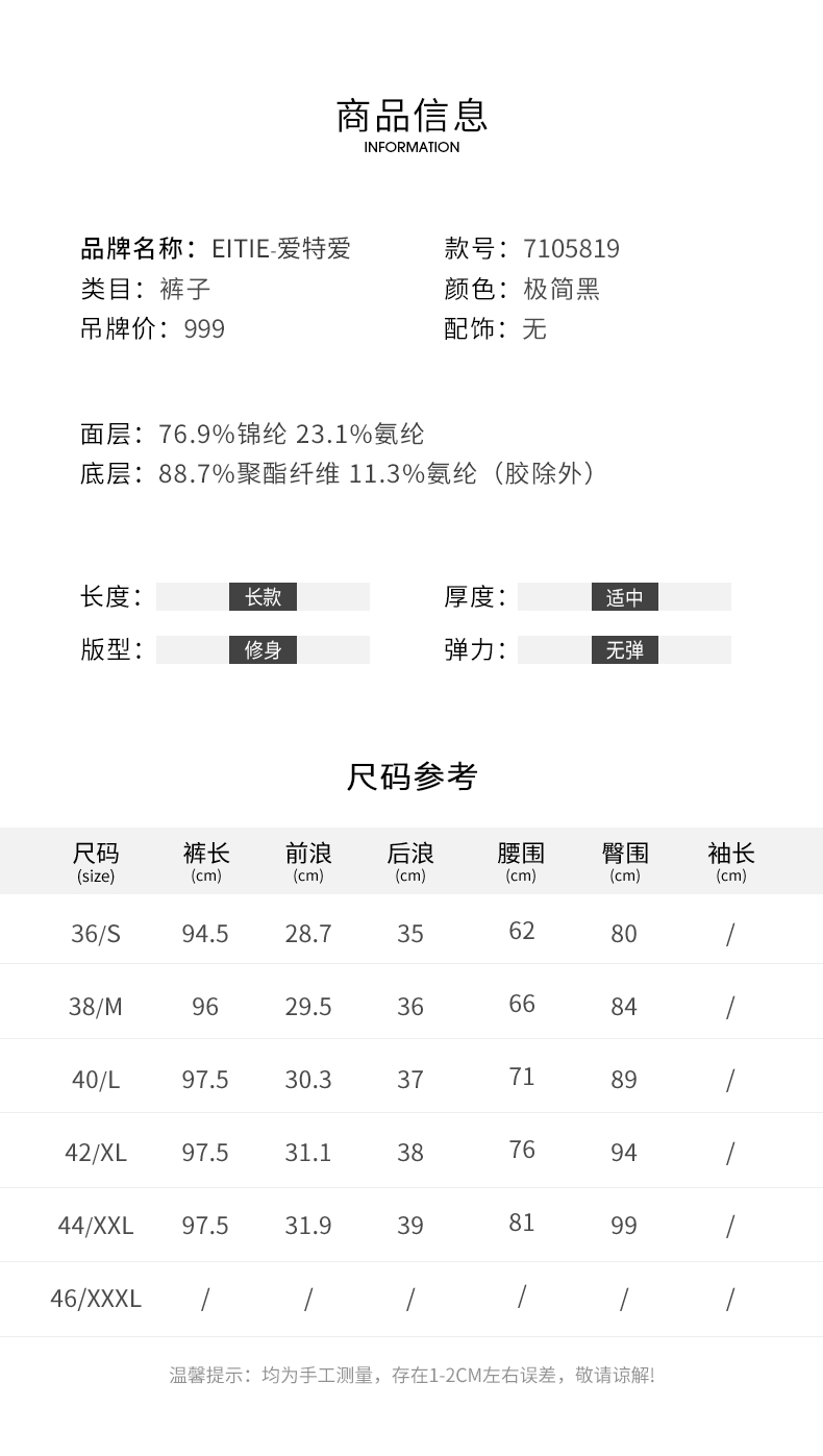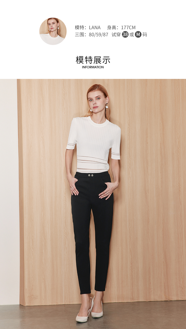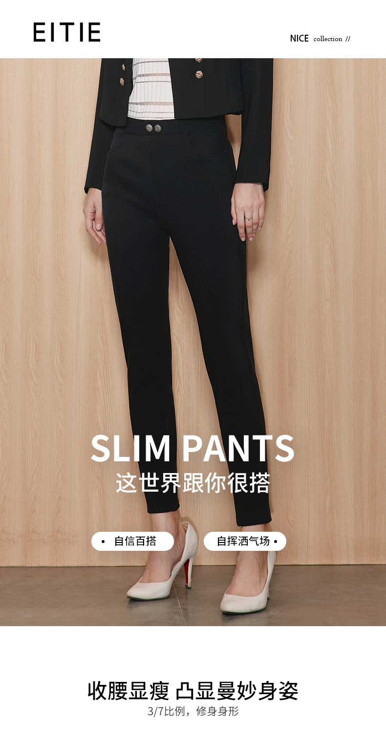 EITIE爱特爱女装春夏显瘦百搭通勤时尚修身打底小脚裤女长裤C1805108