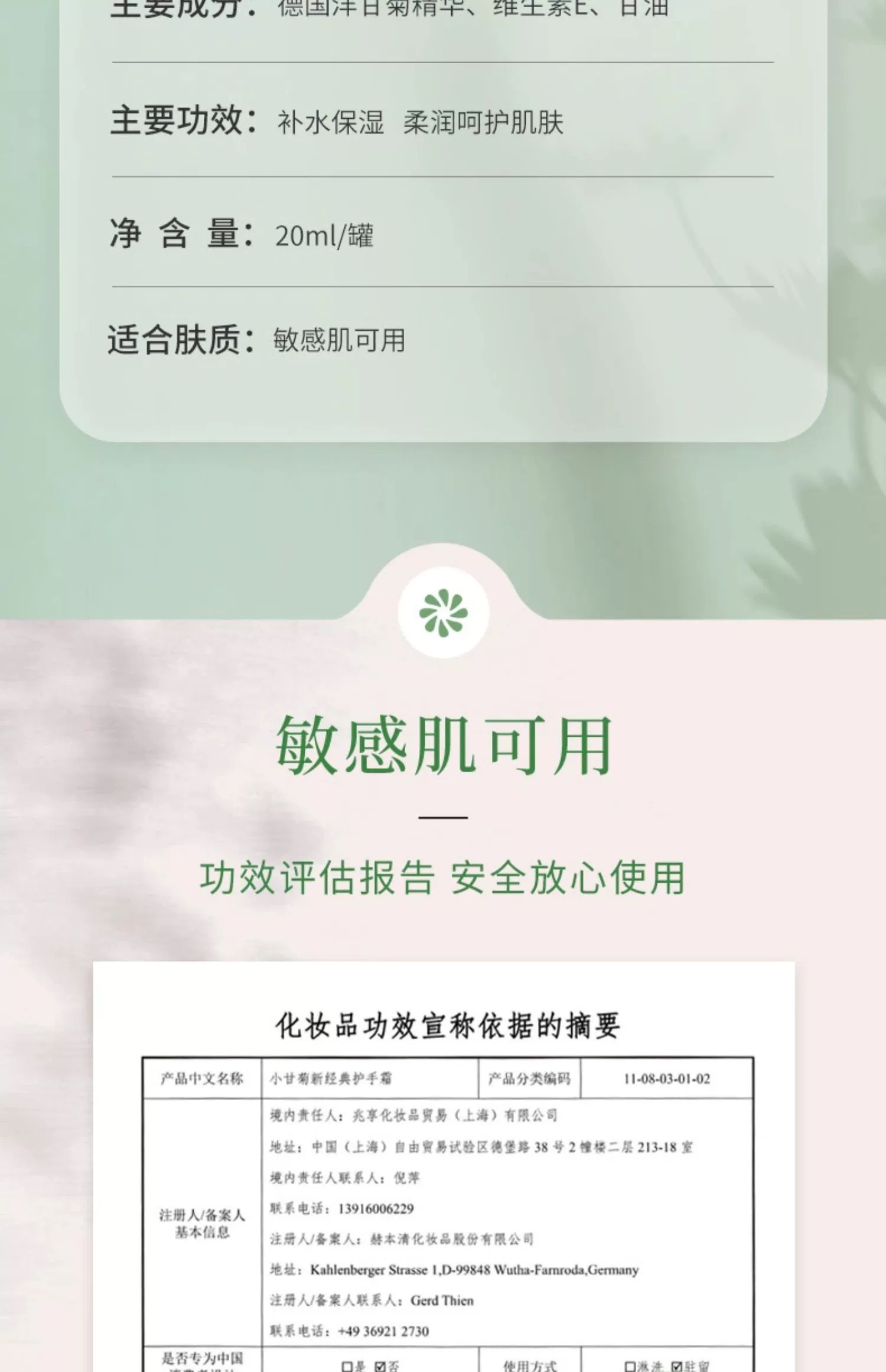 【保税直邮 重庆海关】德国贺本清小洋甘菊雏菊护手霜保湿补水美白小支便携装