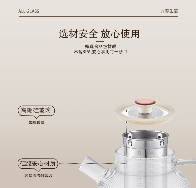 【家用玻璃养生壶】新款花茶壶多功能分体养生杯 办公室小型炖煮烧水壶