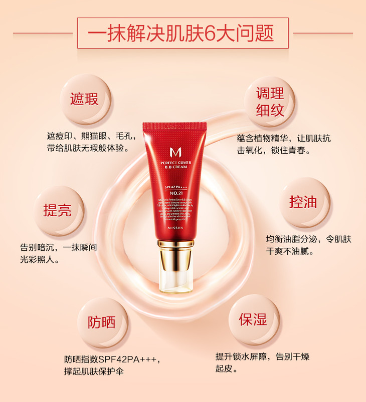 【门店直发】#21 Missha 谜尚红色BB霜50ml(新老包装随机发货)