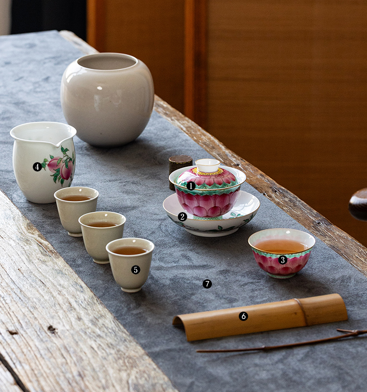 茶香记徐窑碧玉莲纹元宝盖碗景德镇陶瓷手绘粉彩泡茶碗90ml功夫茶具