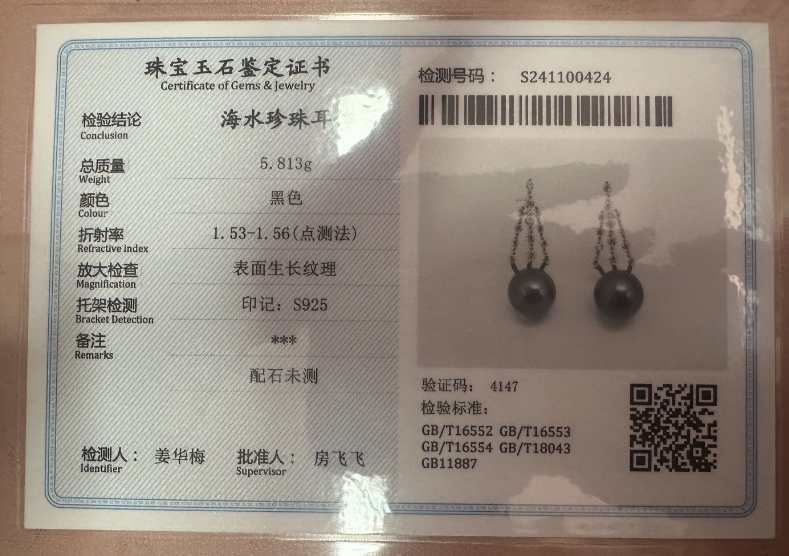 S925银冰雪大溪地黑珍珠耳饰