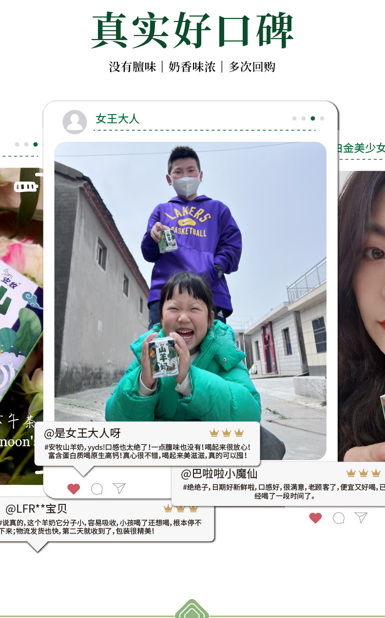 【温馨提示】因冬季气温过低,导致羊奶出现冻住的情况,属正常,请放置在屋内使其自然解冻,不影响口感,请放心饮用。