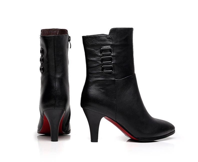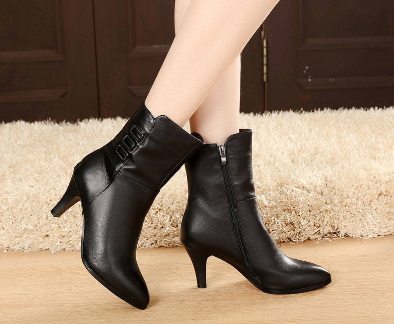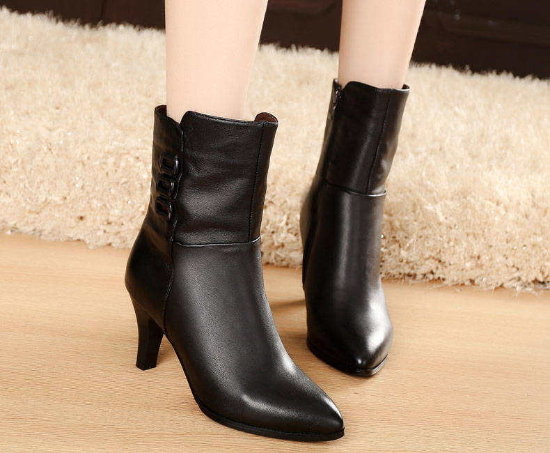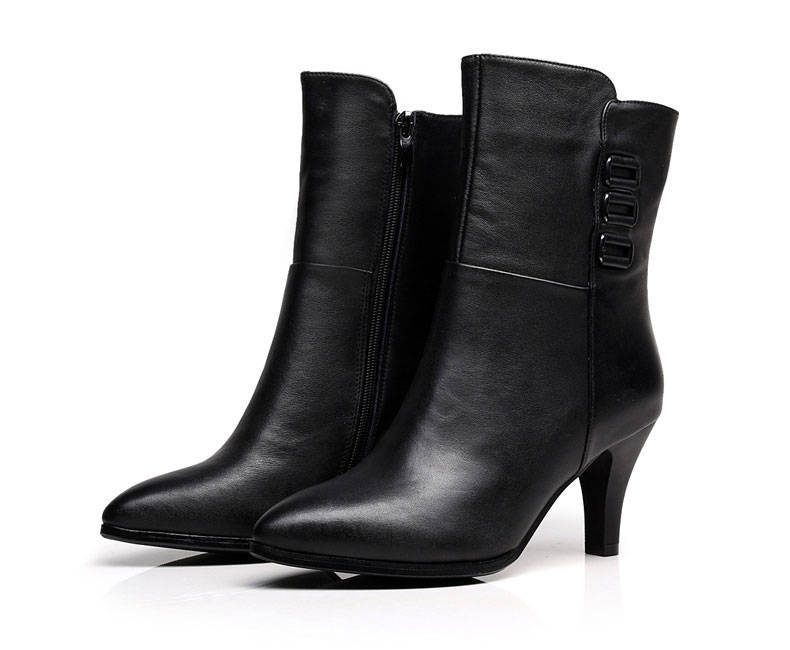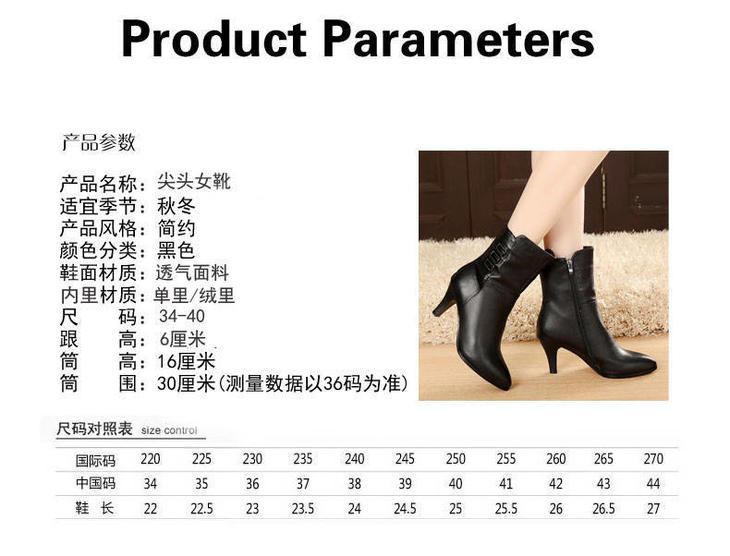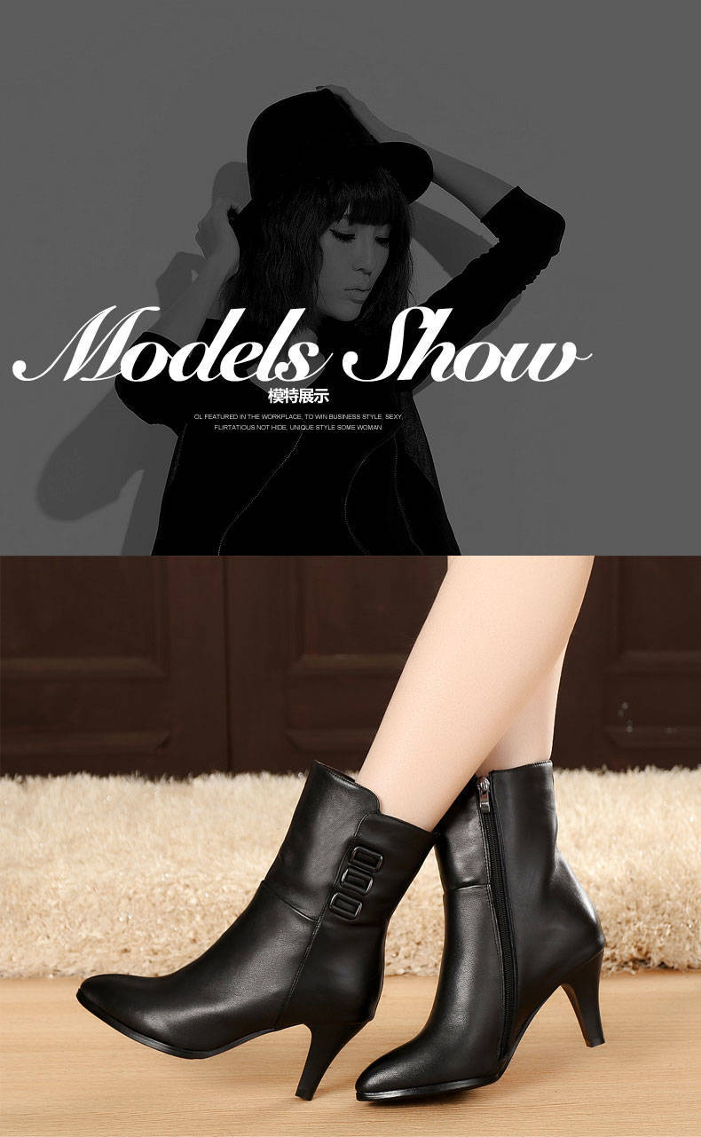 TZF-ANSHANG211201新款时尚气质百搭尖头细跟加绒中筒靴