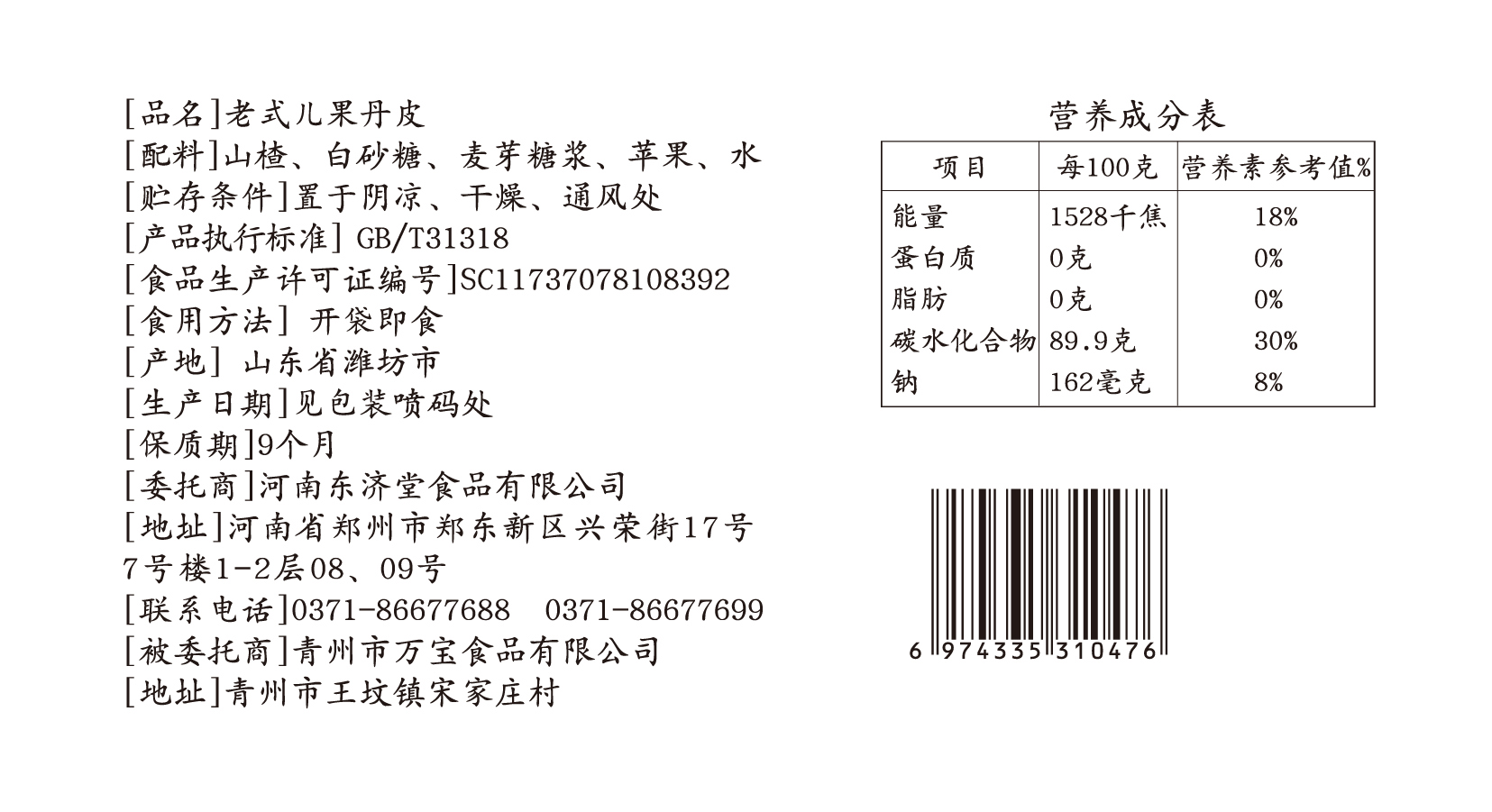 东济堂老式果丹皮 儿时的味道,山楂与回忆的巧妙搭配,酸甜有嚼劲 300g