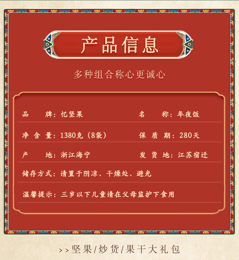 坚果年货礼盒 年夜饭坚果零食礼盒8种1380g坚果年货礼盒