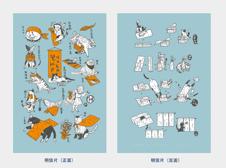 好在这些事儿都解决了。为了完成这个使用功能教育,我们请大家喜欢的插画师——于瑒(点击“这里”,可以查看她之前的作品)绘制了主图,还将“包袱皮使用方法”制作成明信片,随整体包装一同发送。这次的产品的包装,使用的是日本供货商竹尾的纸(我们也曾在“这里”报道过这间公司如何见证日本设计史)。总之,每件产品都能成为海报一样的存在,希望它们能够为你的生活空间增添乐趣。