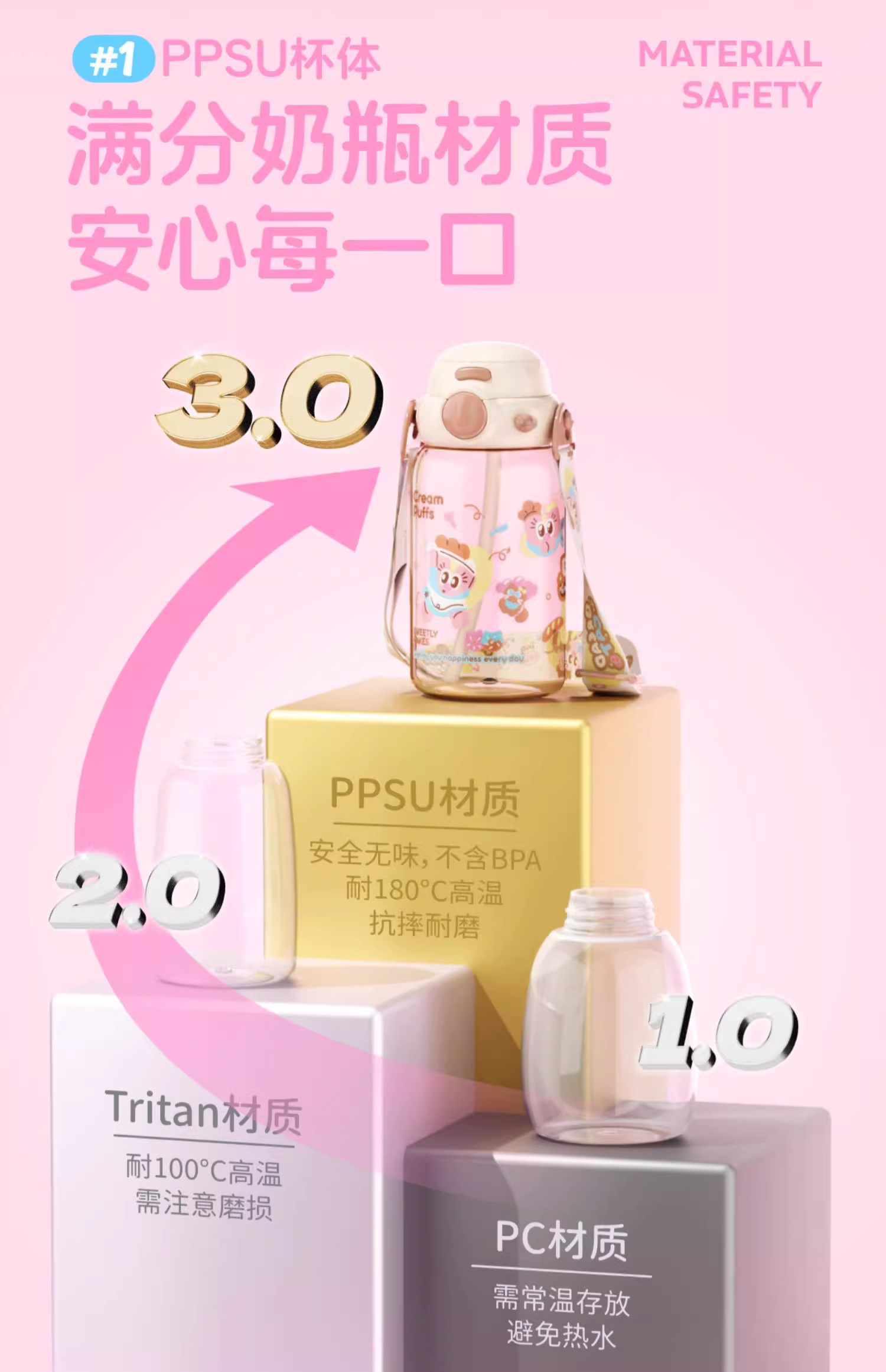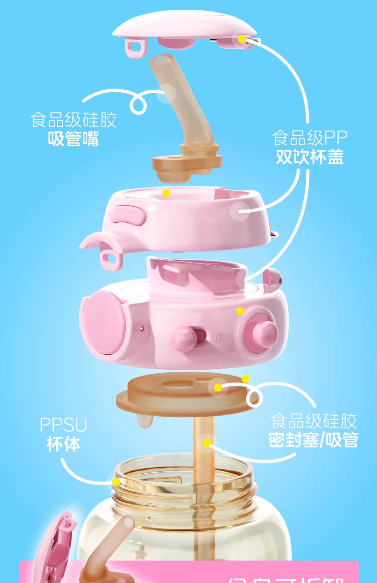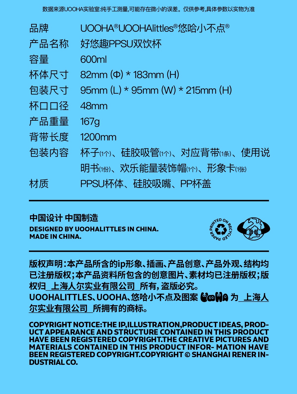 uooha好悠趣PPSU双饮杯春雨漫步-绿白 600ml