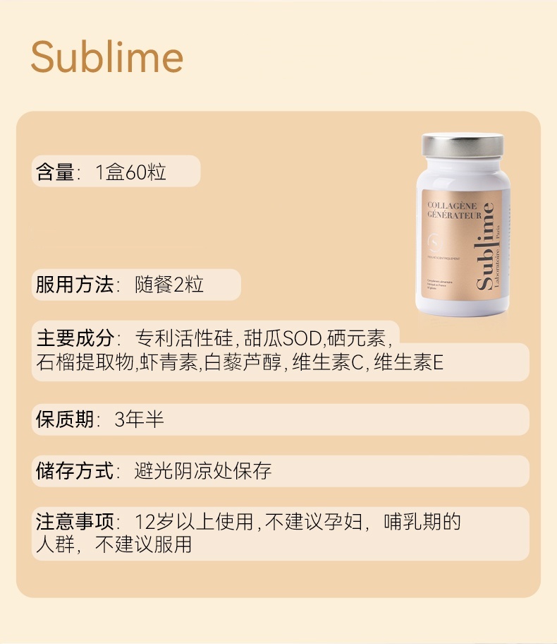 【跨境】Sublime 内生胶原蛋白肽口服胶囊 60粒/瓶