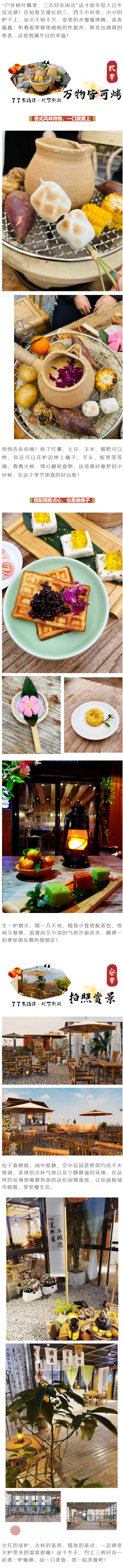 258元柿事如意四人围炉煮茶套餐 【品】茶(7选4) 金骏眉(煮红茶) 正山小种(煮红茶) 铁观音(乌龙茶) 竹叶青(绿茶) 滇红烤茶*(炭火焙茶) 竹筒奶茶(乌龙茶) 盖碗茉莉花茶(花茶) 【茶食 】粗粮 红薯 土豆 玉米 小吃 核桃 板栗 棉花糖 花生 柿子 橘子 香蕉 花生 红枣 【茶点】 桃酥 蛋小乖坚小果 绿豆糕 爆小贝绿豆味 碳炉含配碳 (加碳需额外加钱18元/份,可燃3-4小时) 茶盏4位
