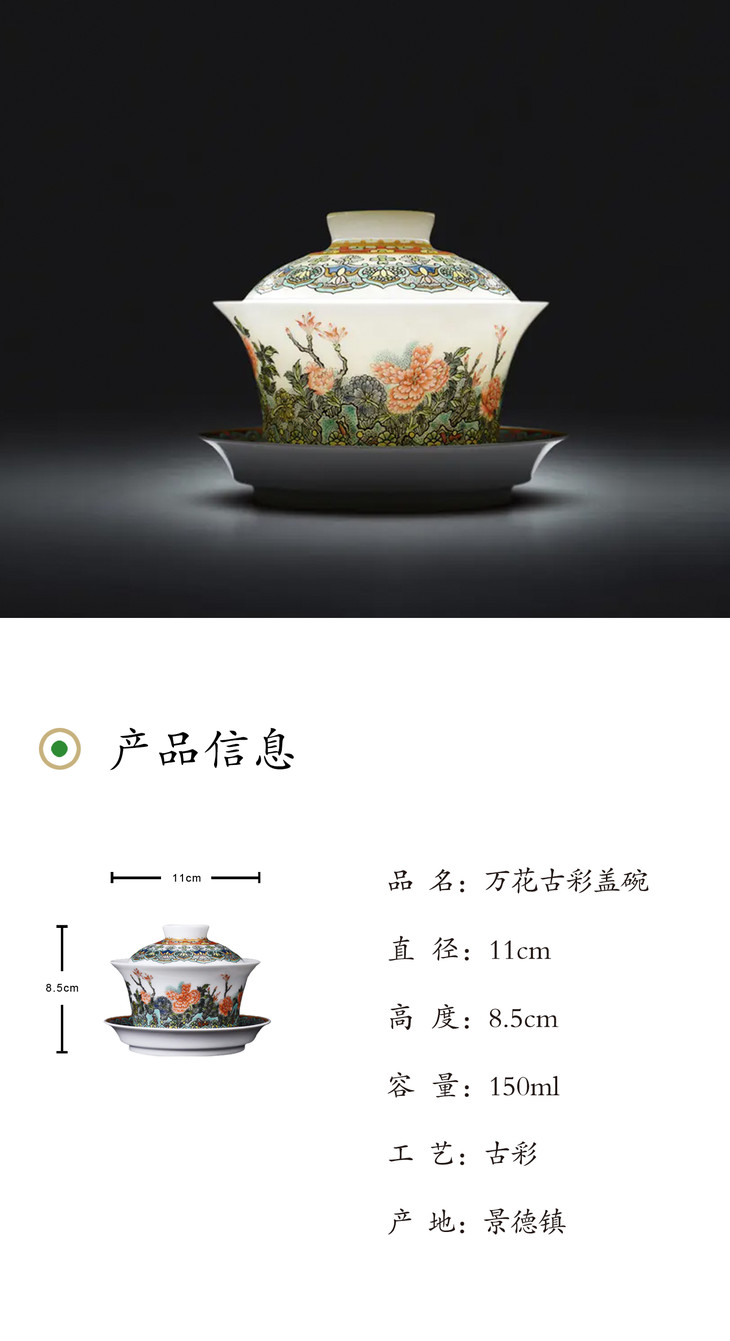 万花古彩盖碗