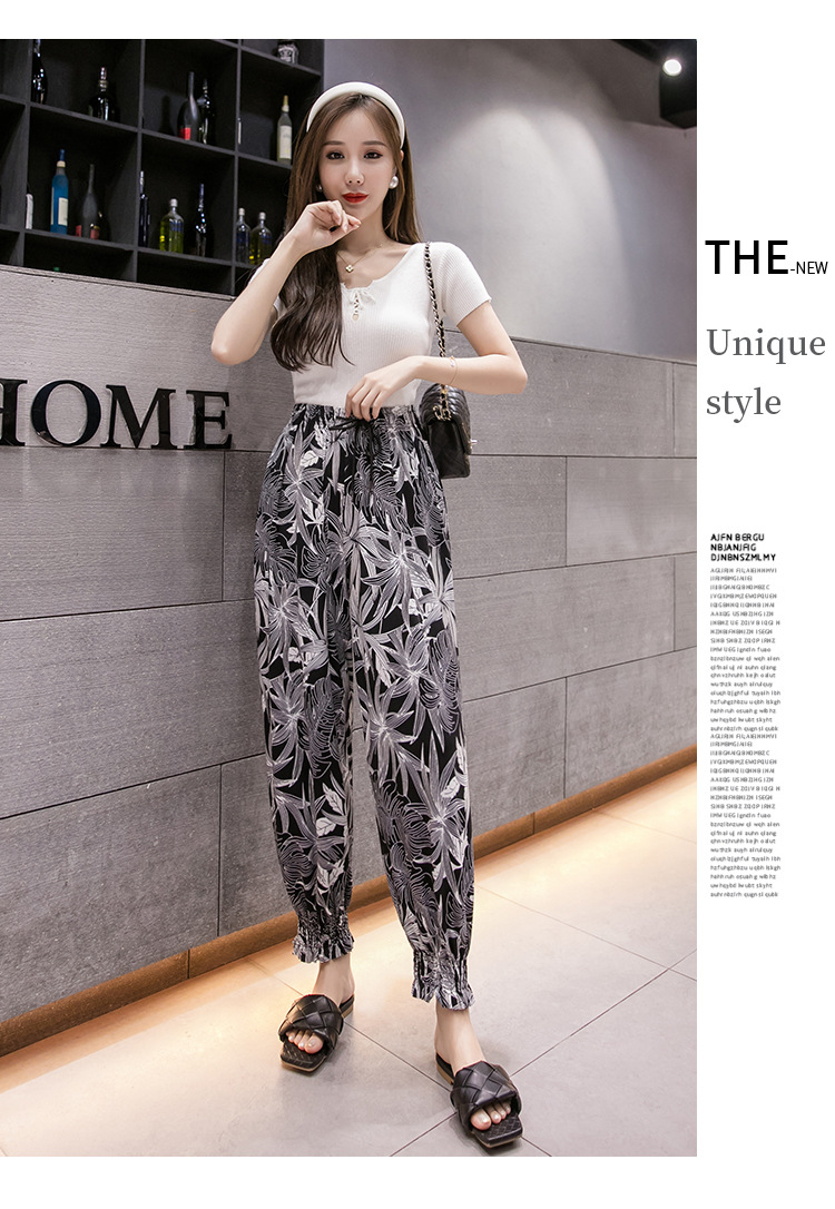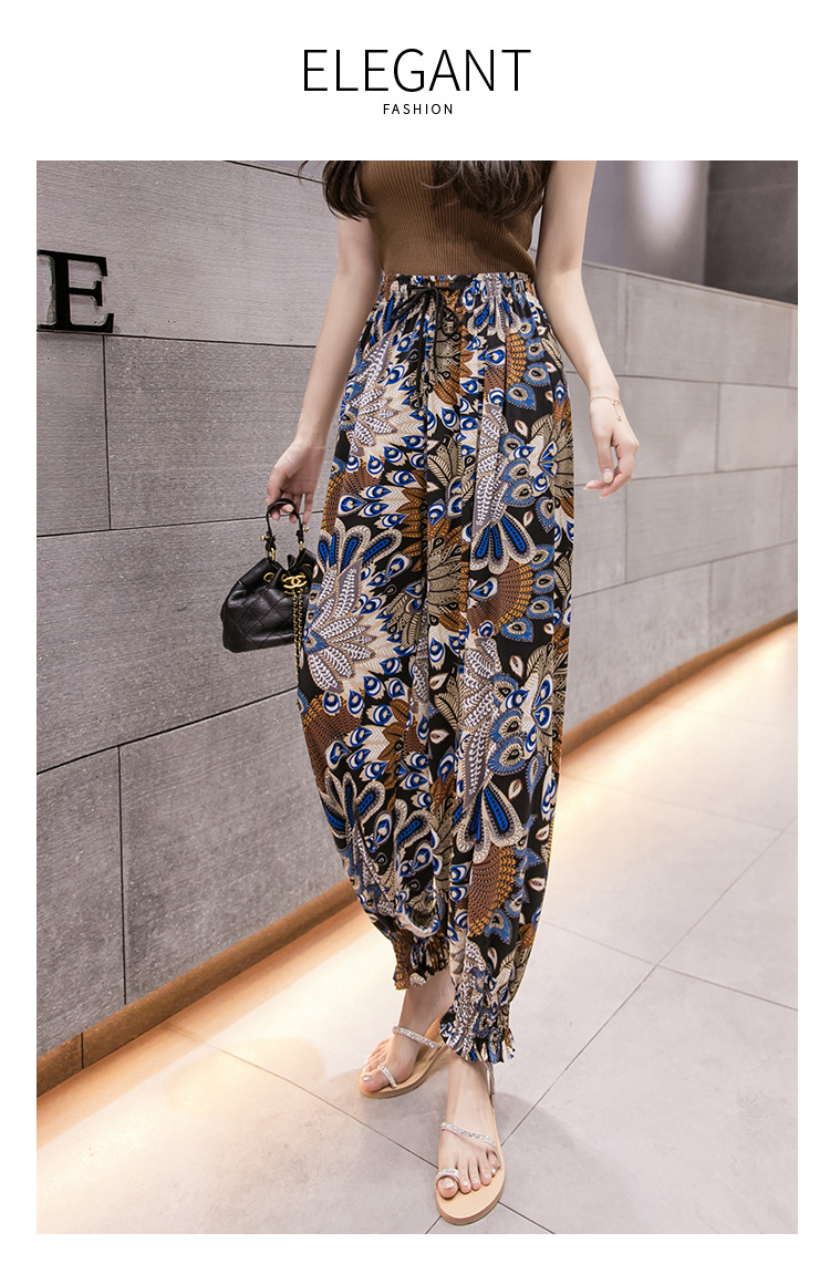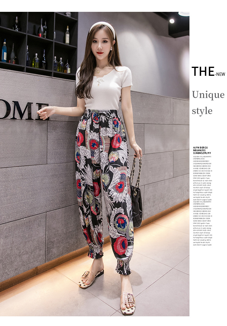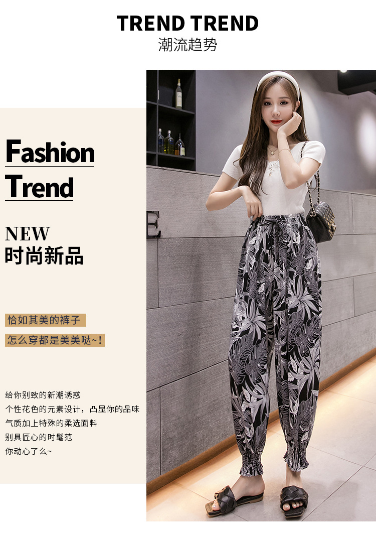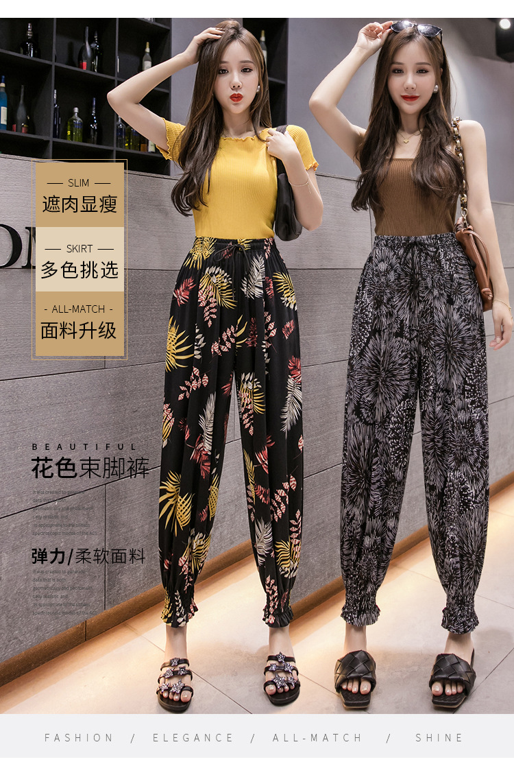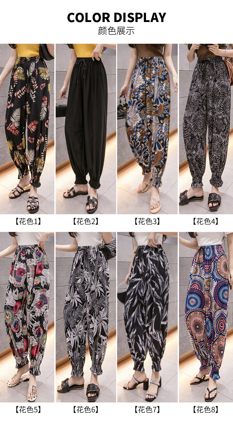 MQ-QQ616夏季新款薄款花色冰丝宽松时尚灯笼裤YY