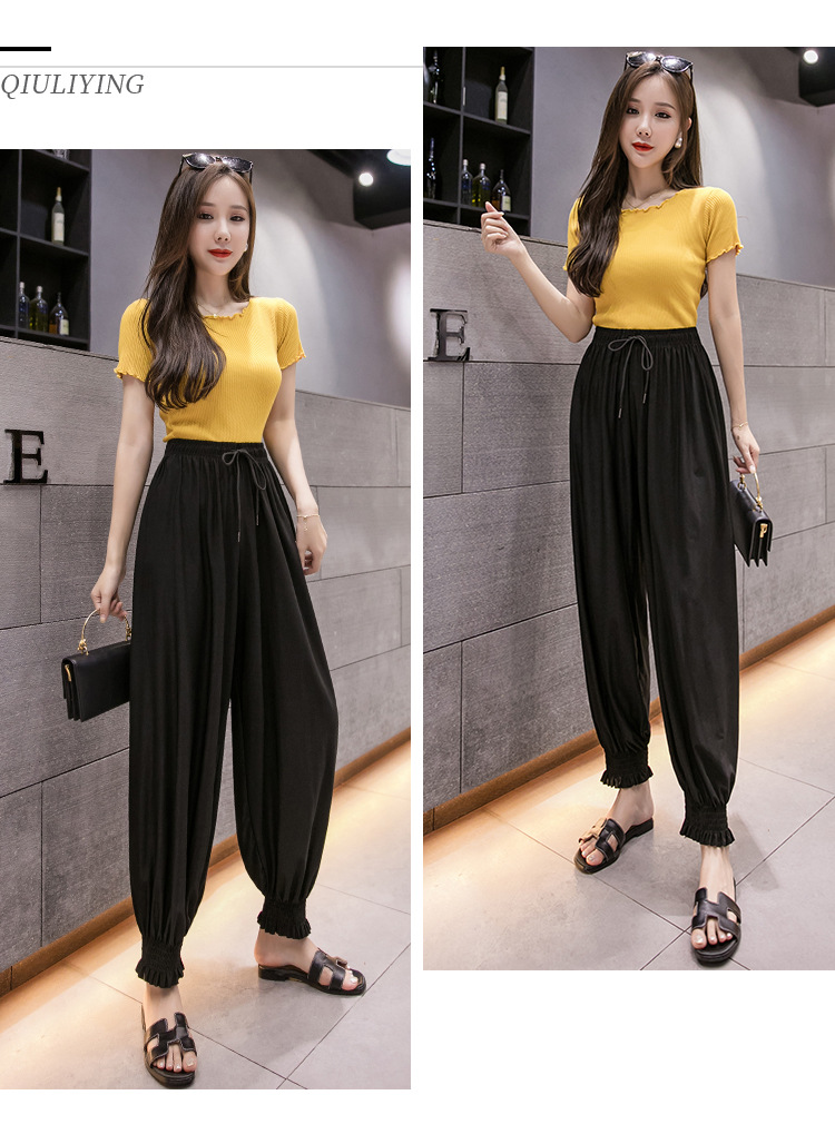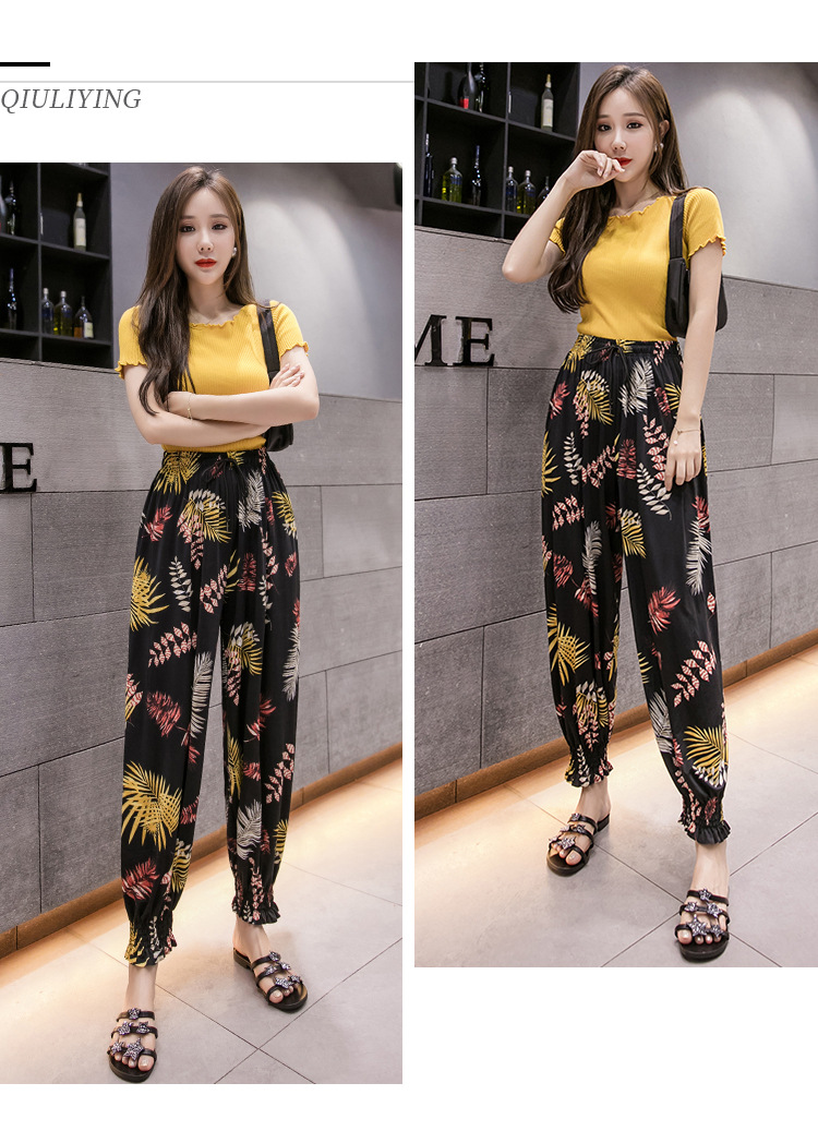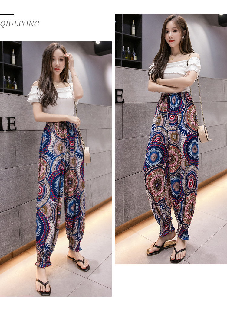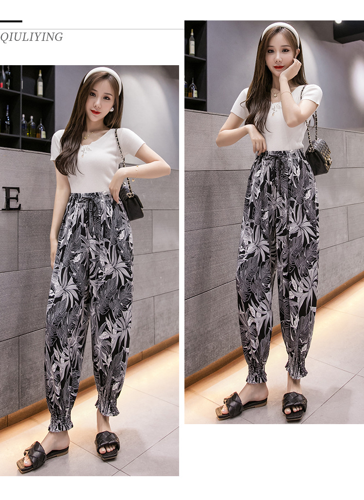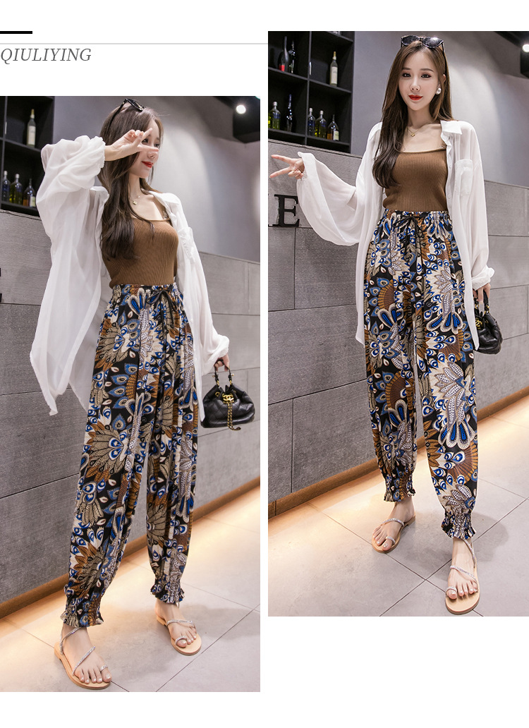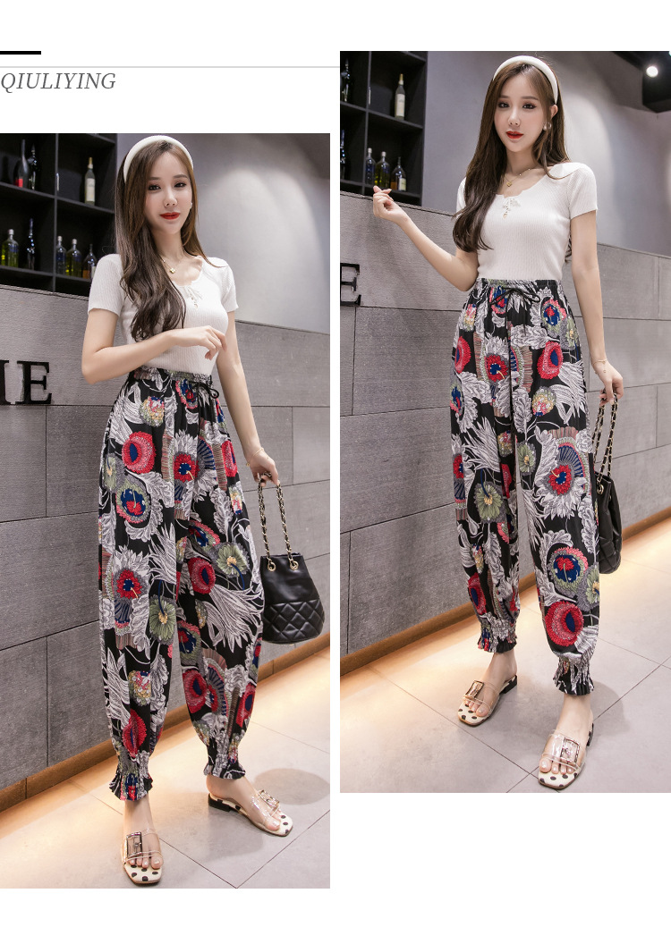 MQ-QQ616夏季新款薄款花色冰丝宽松时尚灯笼裤YY