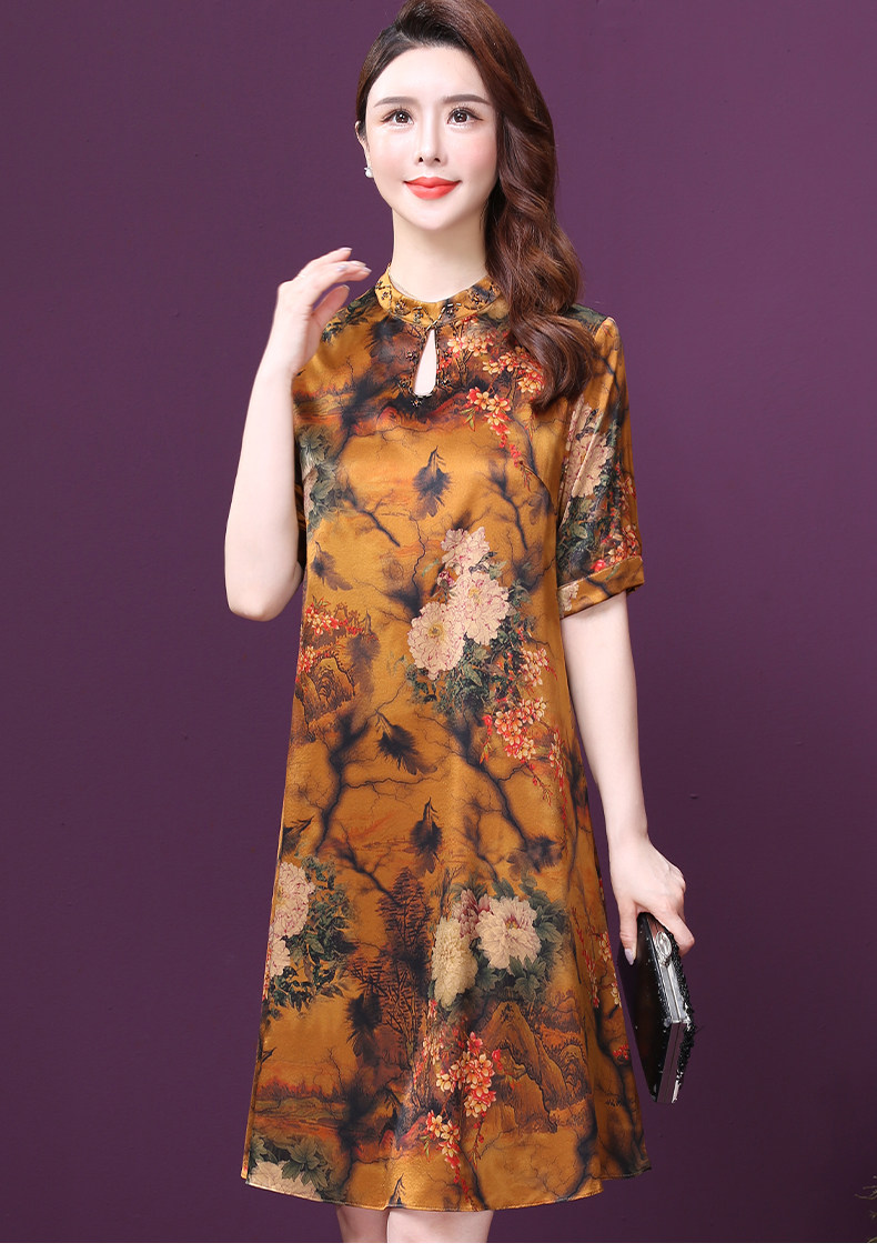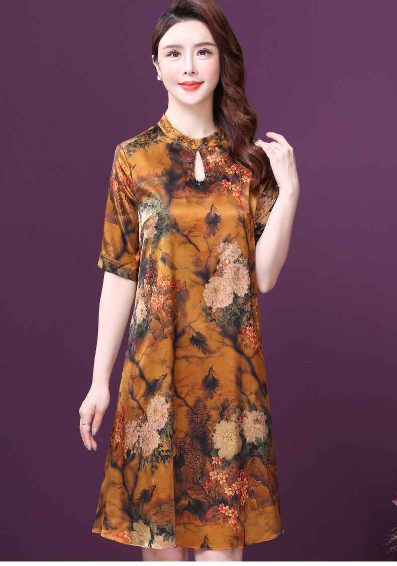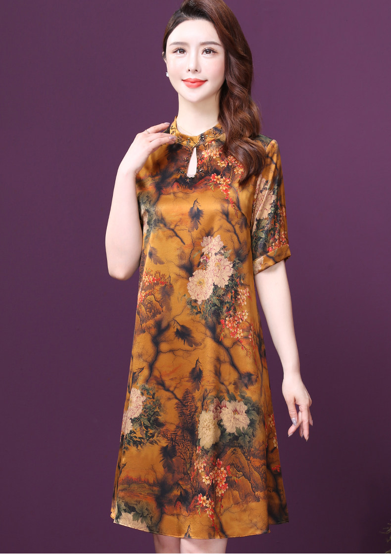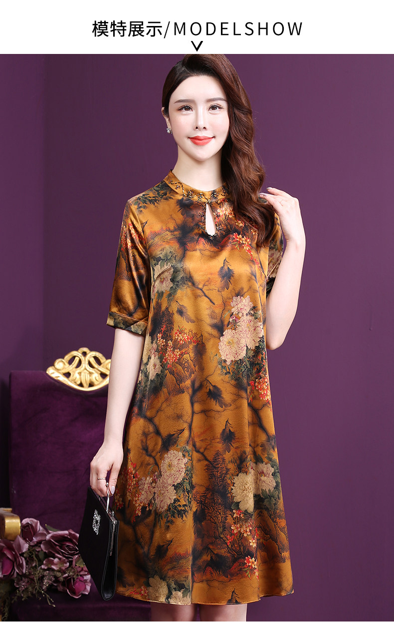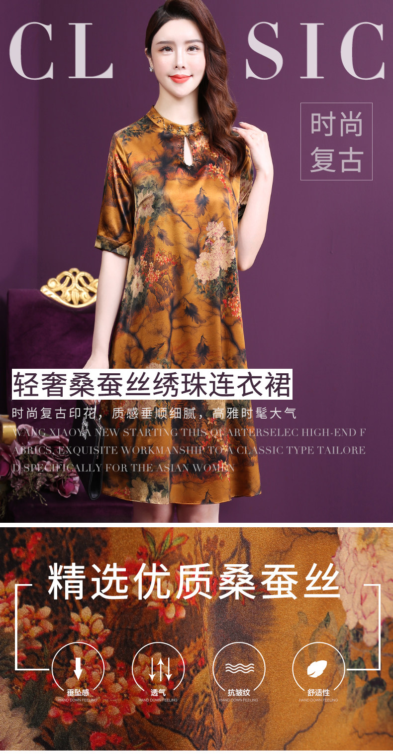 WXY-W-K9-2086真丝新款夏水滴领宽松遮腹桑蚕丝连衣裙