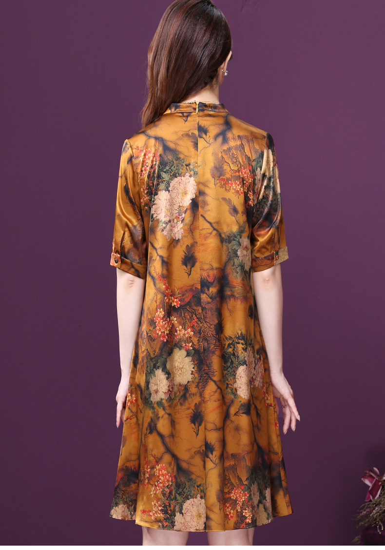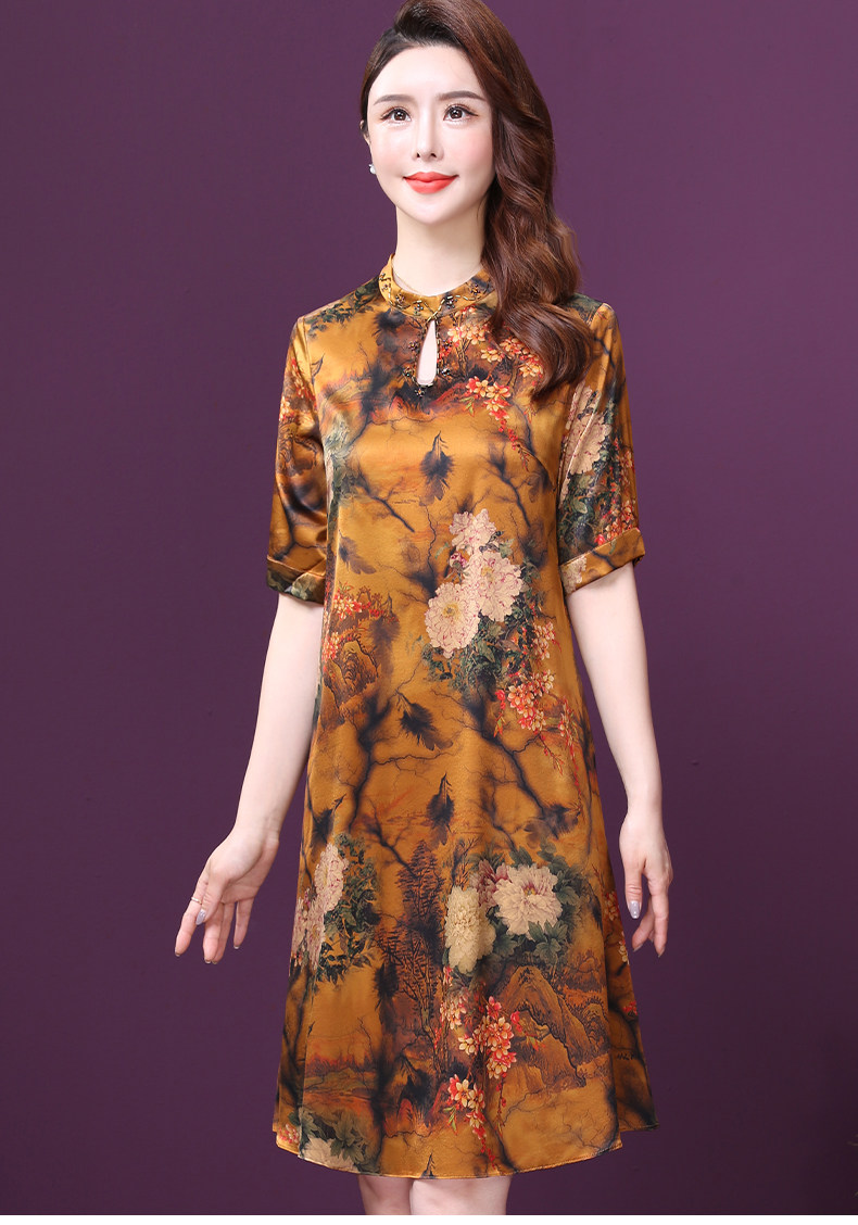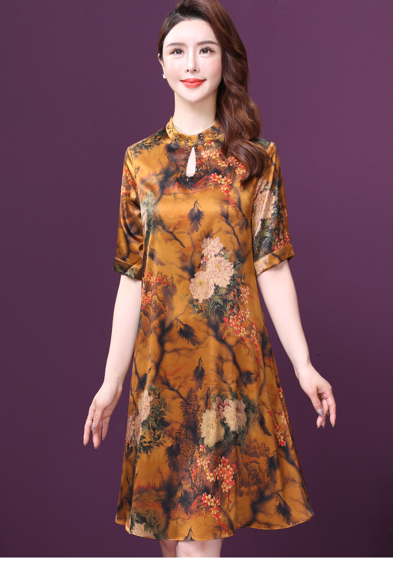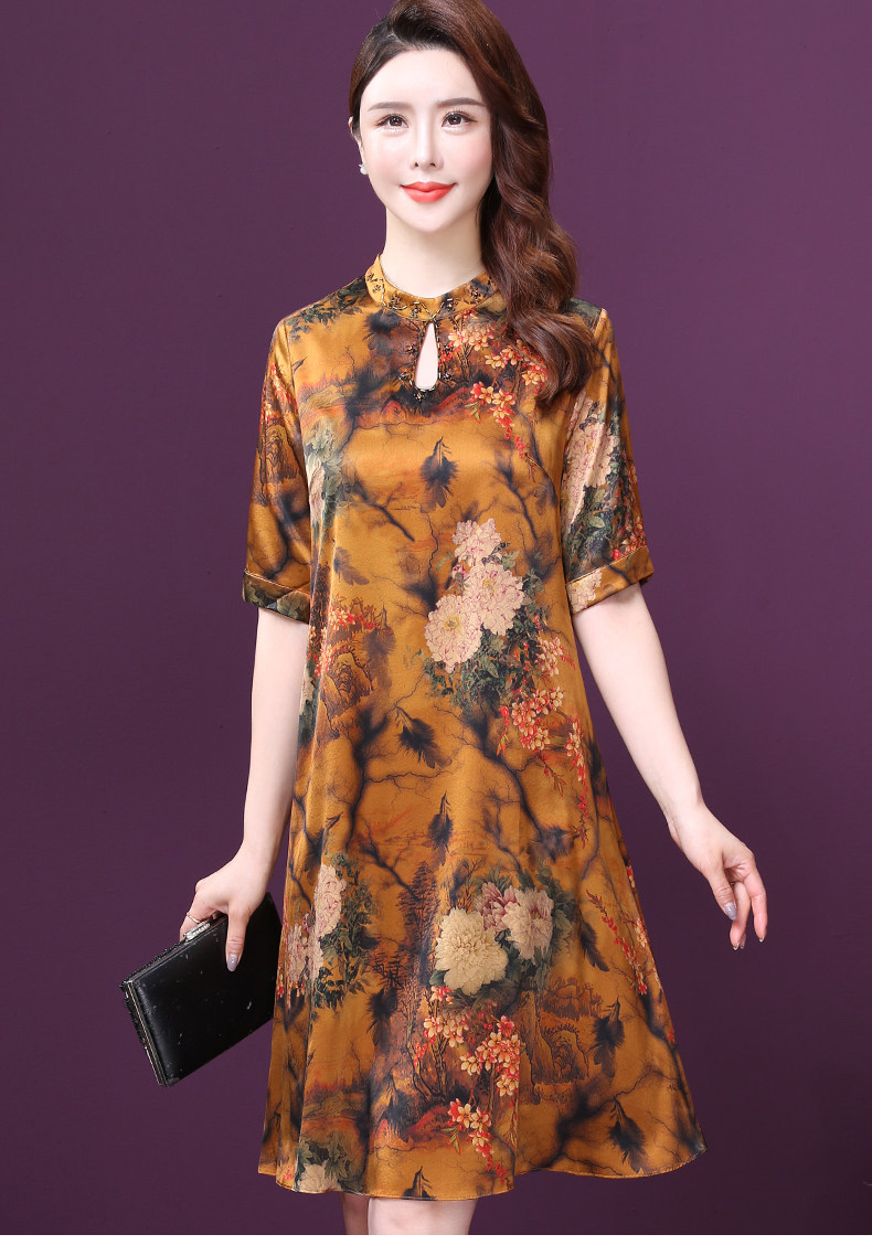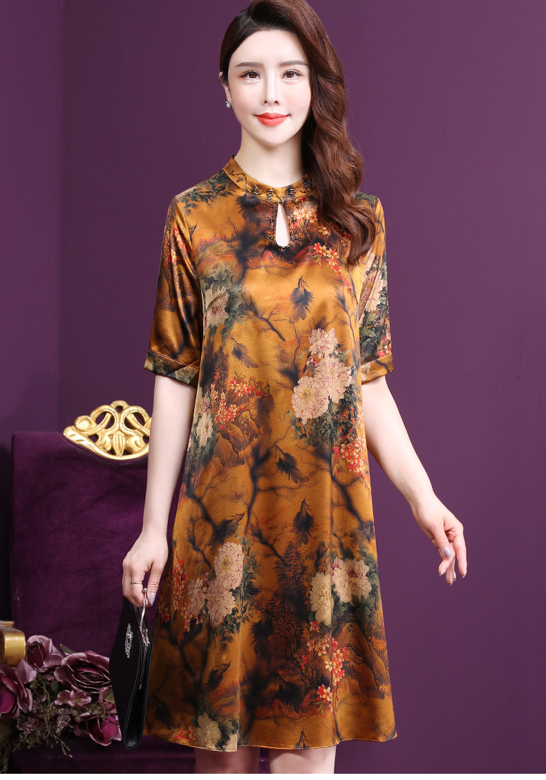 WXY-W-K9-2086真丝新款夏水滴领宽松遮腹桑蚕丝连衣裙