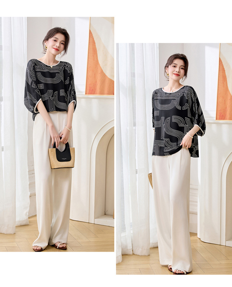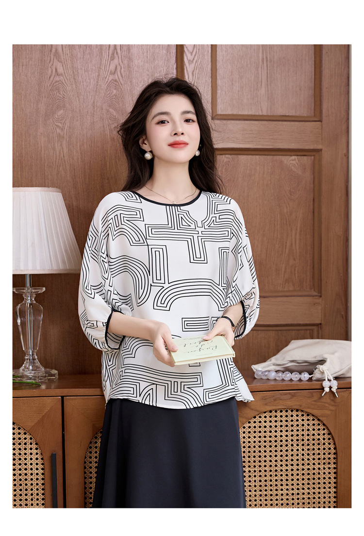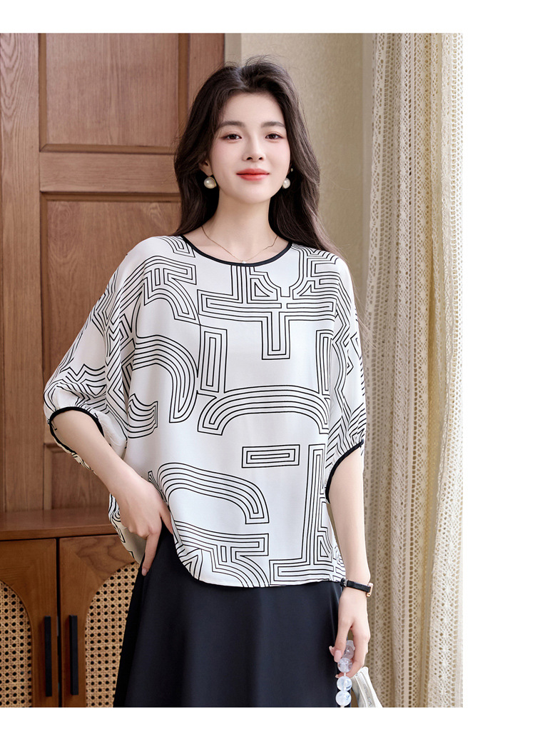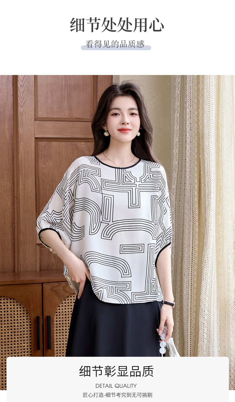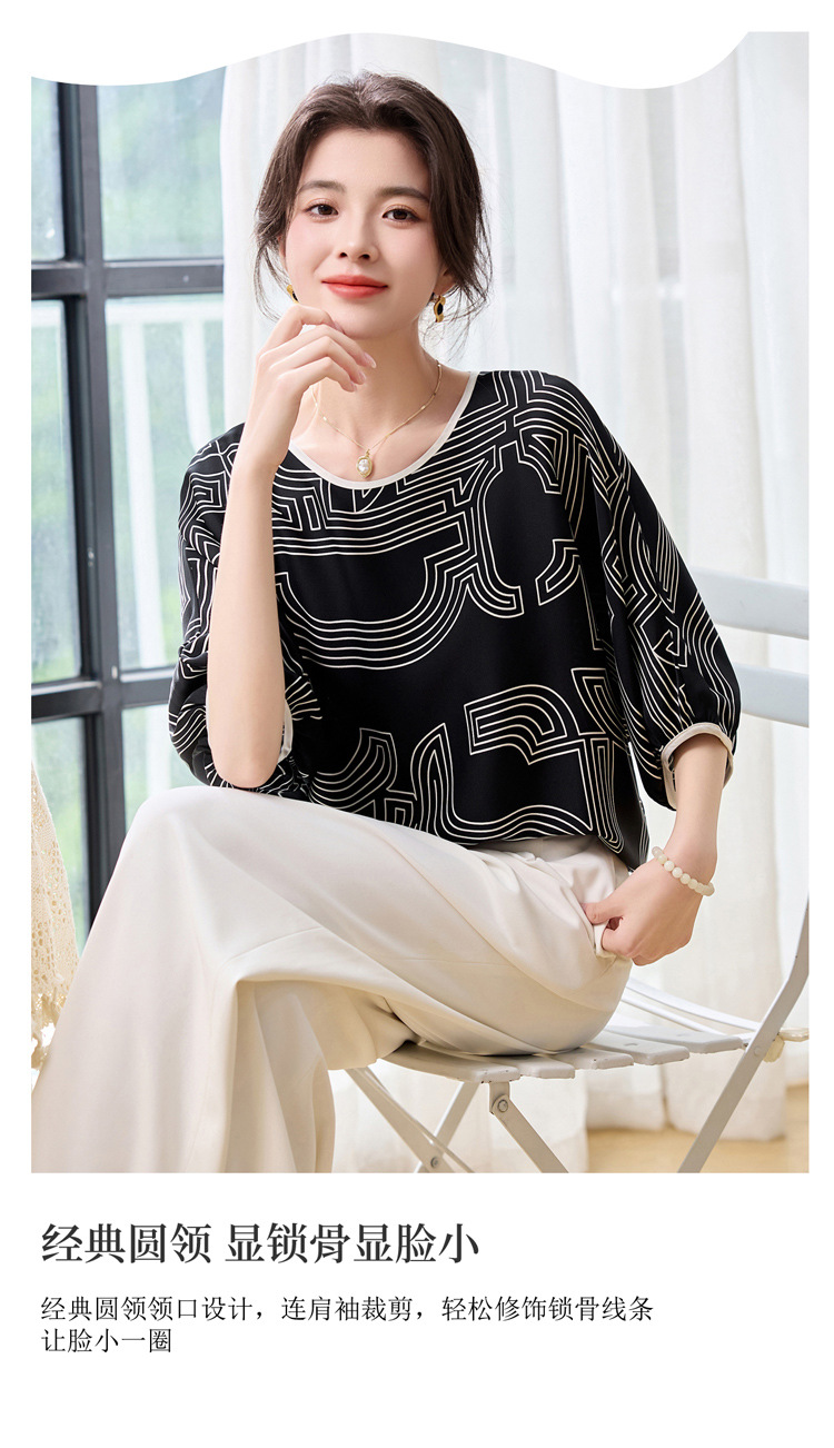 丁摩 轻奢大牌真丝上衣女春夏季圆领设计感气质减龄衬5ZF-3666