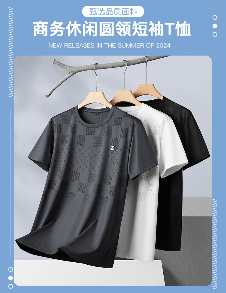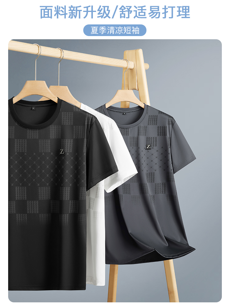 【冰丝高弹】【新款DPF】大依优型大码短袖T恤圆领加肥加大男装大号大码上衣男士休闲半袖夏季