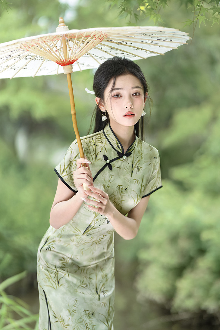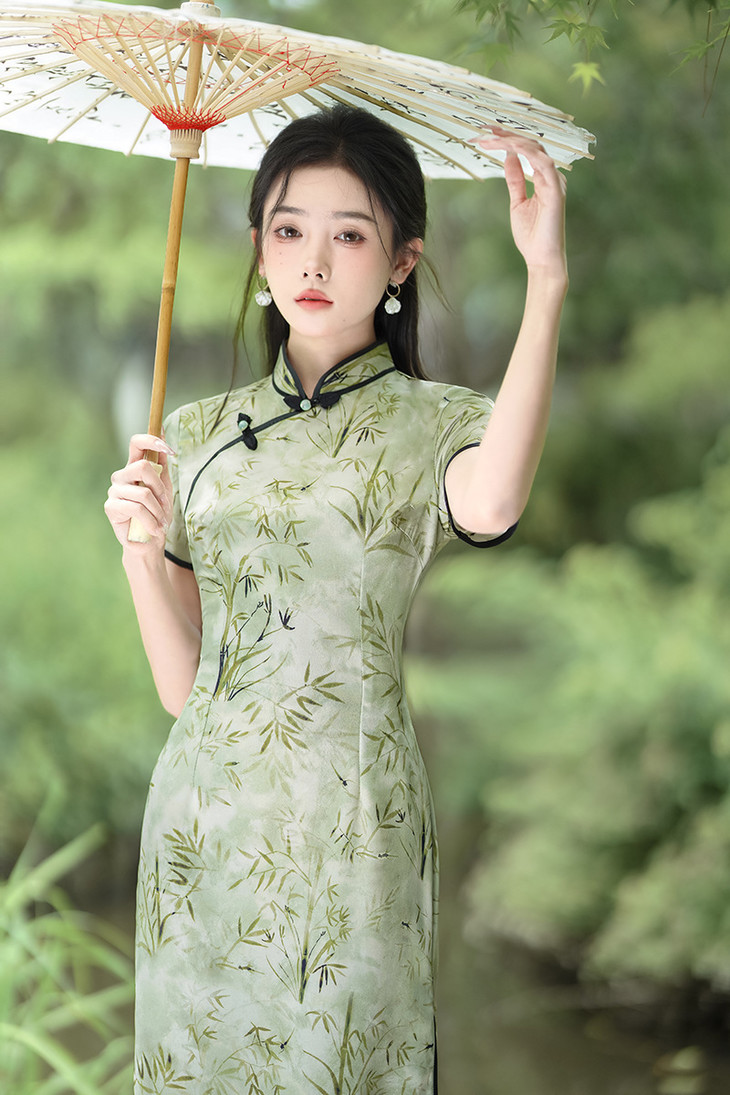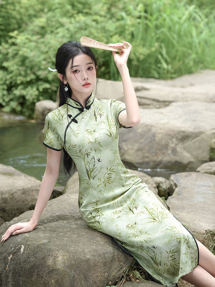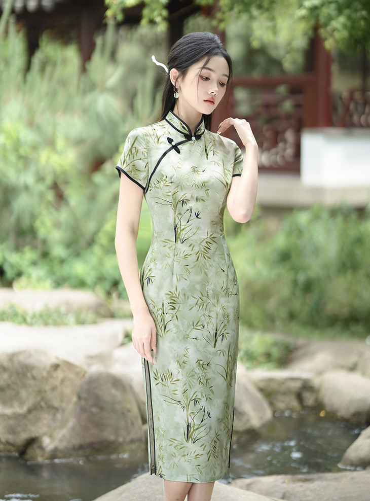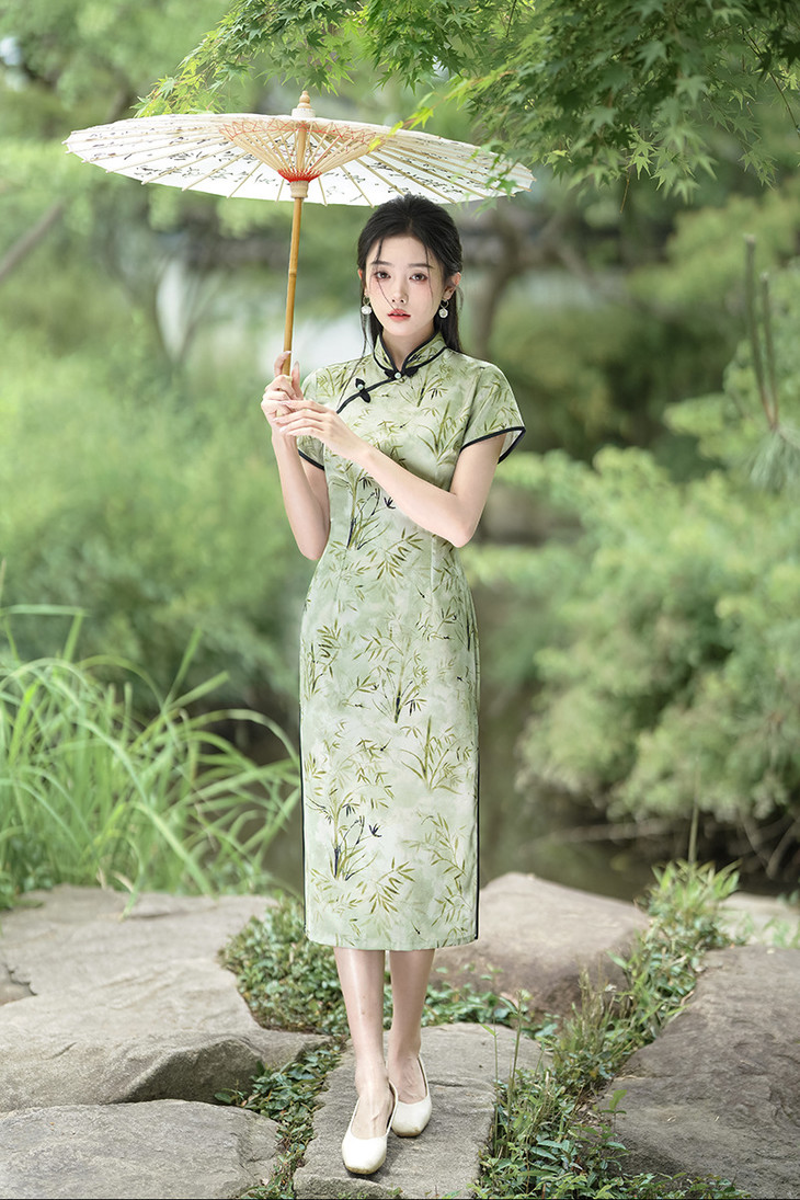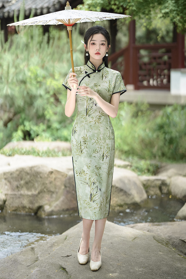 国风清雅气质,新中式竹叶中长款改良旗袍XL1017