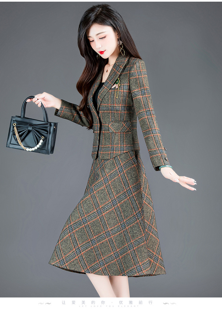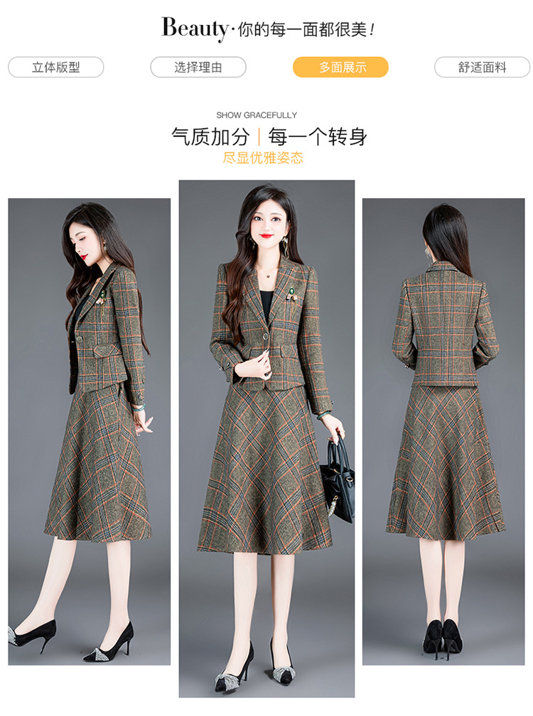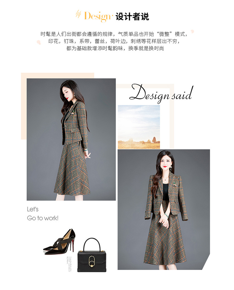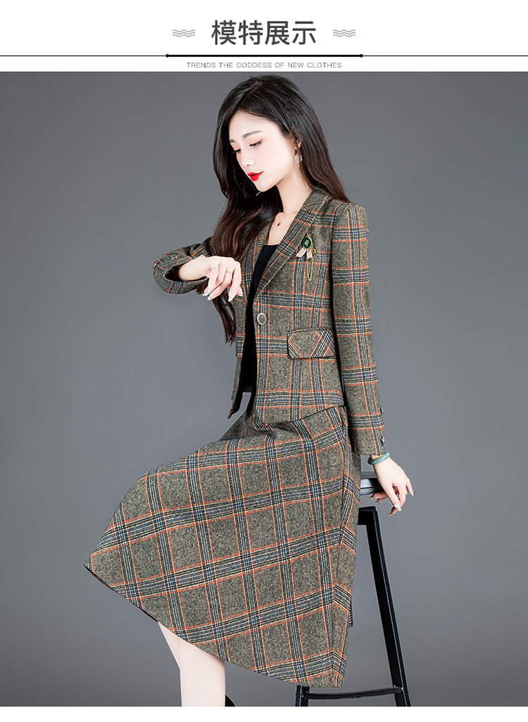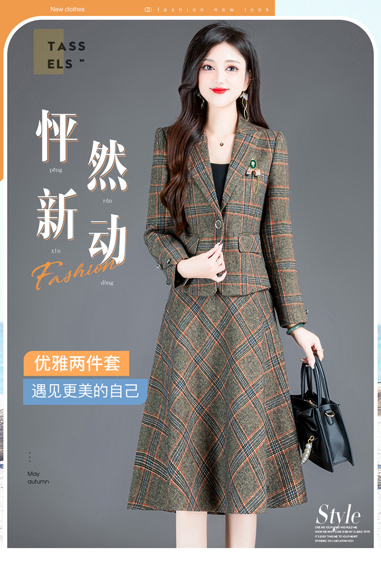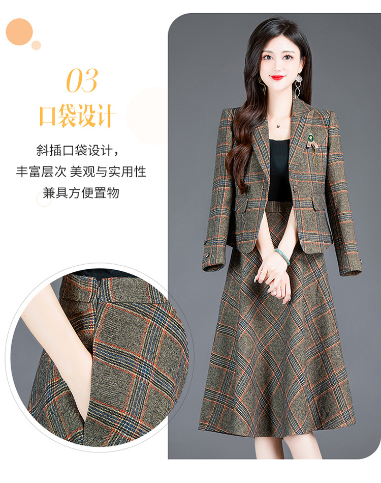 时尚气质,格纹裙西装短款上衣高腰半身裙套装裙两件套连衣裙QYM-TYH-231387-Y