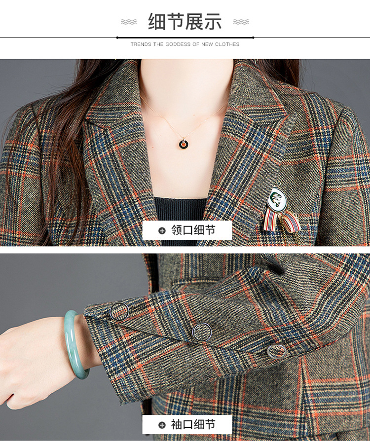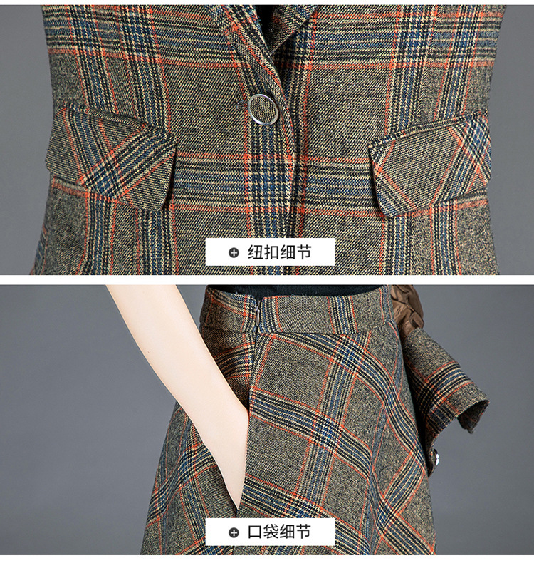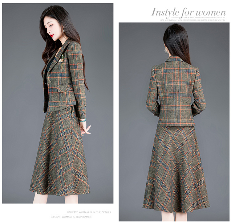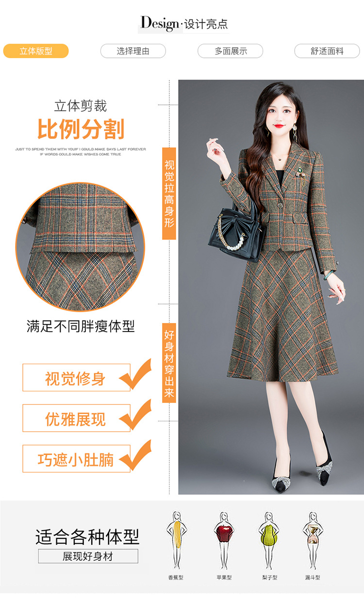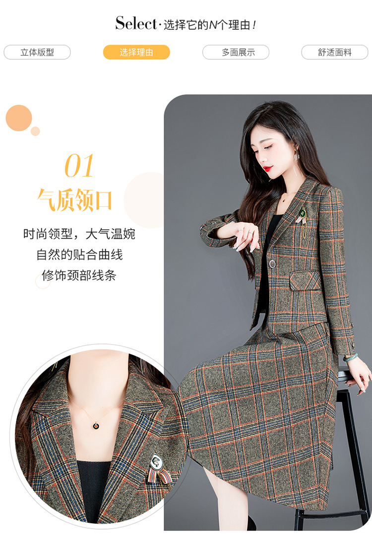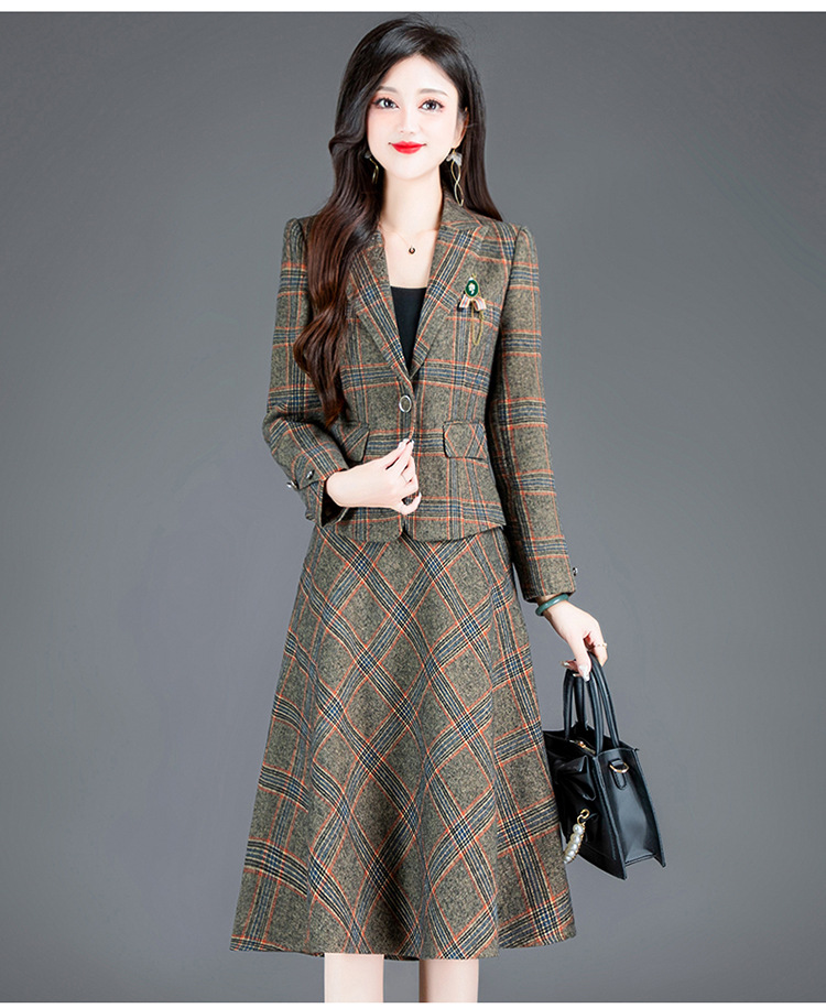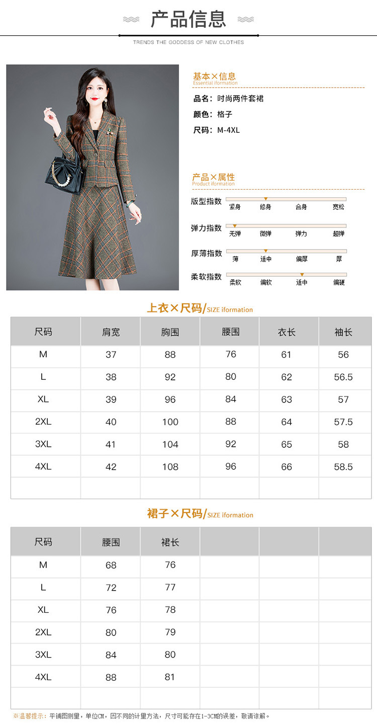 时尚气质,格纹裙西装短款上衣高腰半身裙套装裙两件套连衣裙QYM-TYH-231387-Y