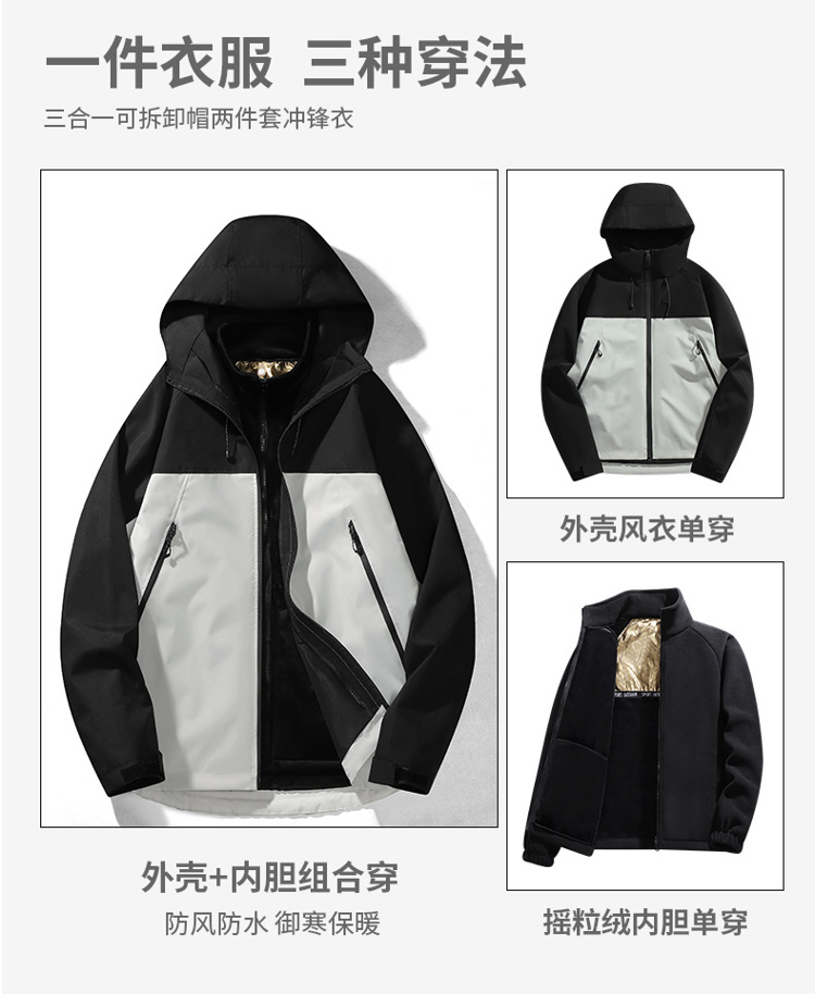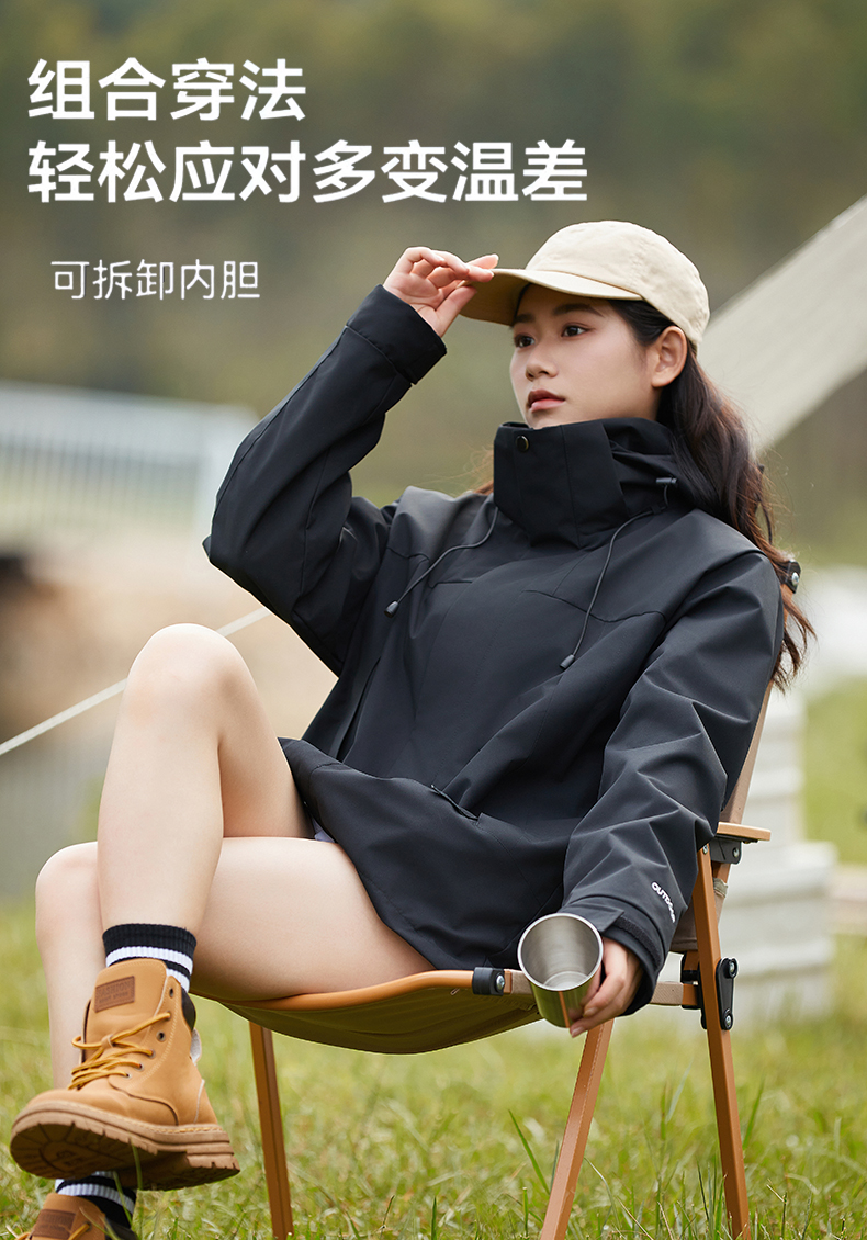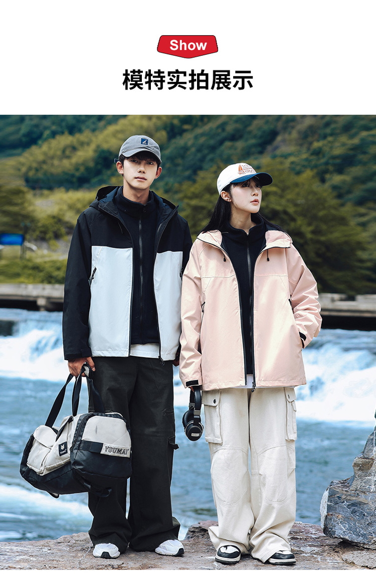 【雅鹿 三合一保暖外套2077/2368】户外情侣外套 防泼面料耐磨舒适透气