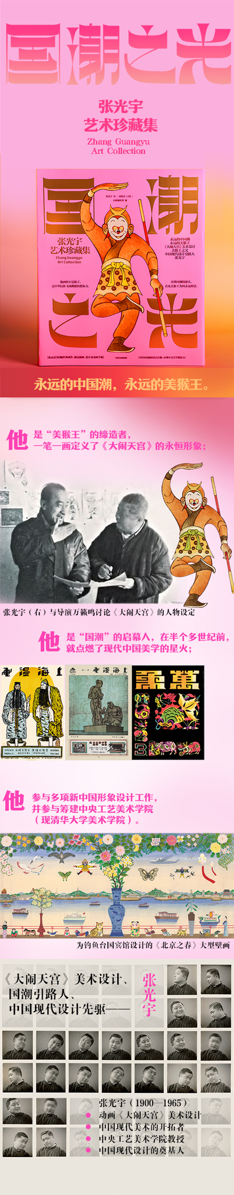 1、【读懂张光宇,读懂永远的中国潮】动画《大闹天宫》美术设计、美猴王之父、中国现代设计引路人,作为中国现代设计的开路人,张光宇被称为“百年中国新美术运动的开山人物”,身兼画家、设计家、出版家、艺术教育家等多个头衔,在电影美术、工艺美术、插画、广告设计等领域成就斐然,从《西游漫记》的奇想到《大闹天宫》的美猴王,从传统题材插画到商业设计的先锋实践,他的艺术,既是民族的,也是世界的;既传统,亦超前。