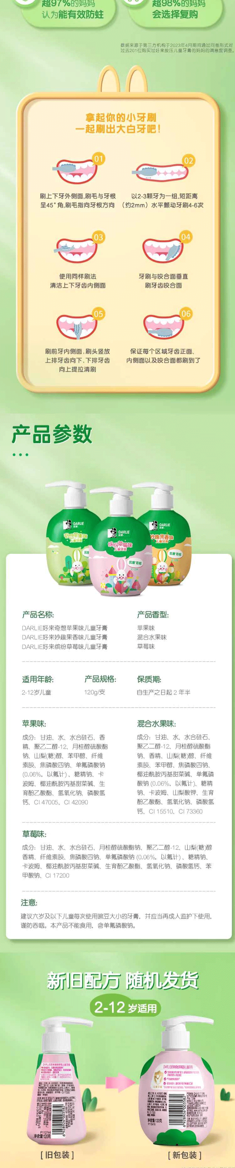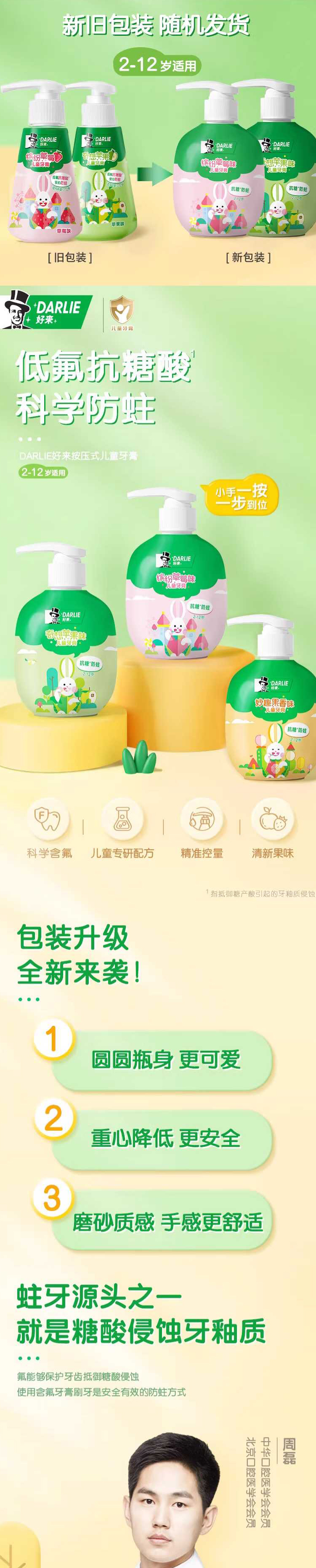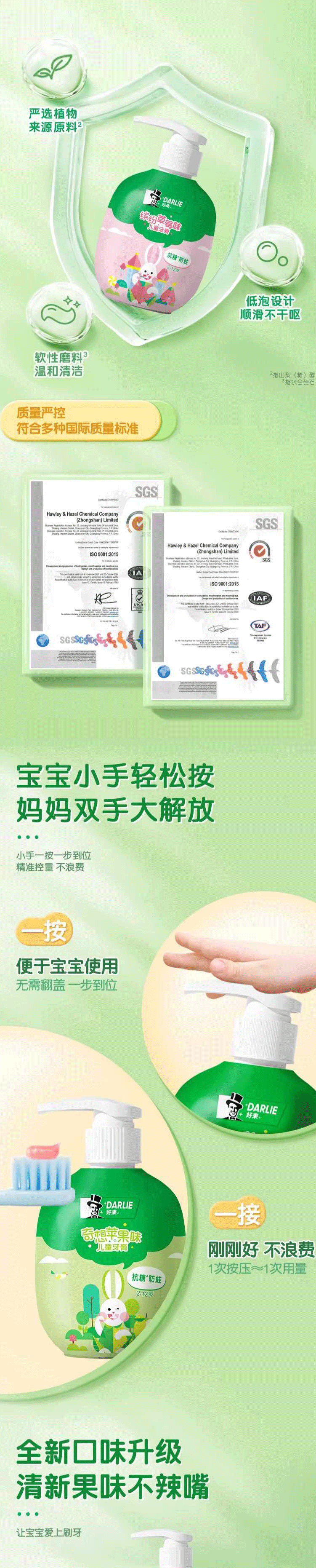 【品牌直发】DARLIE好来黑人牙膏2-12岁儿童牙膏含氟防蛀护龈固齿按压120g-批发