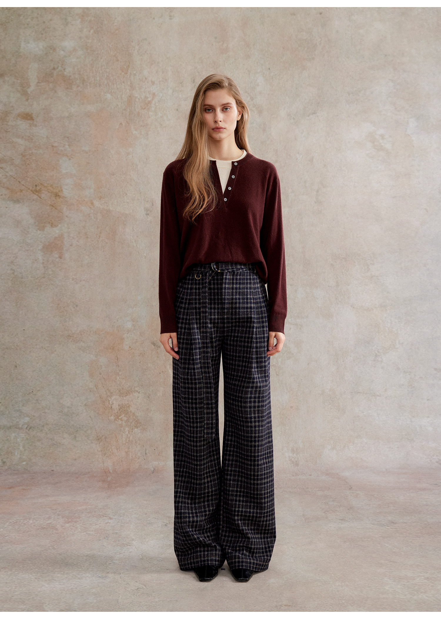 羊毛混纺秋冬复古百搭格纹休闲裤KZ2504062