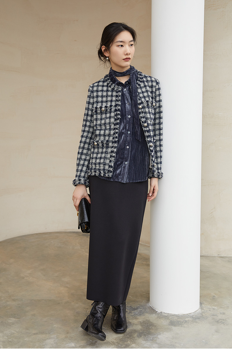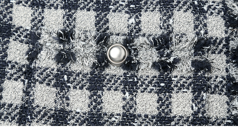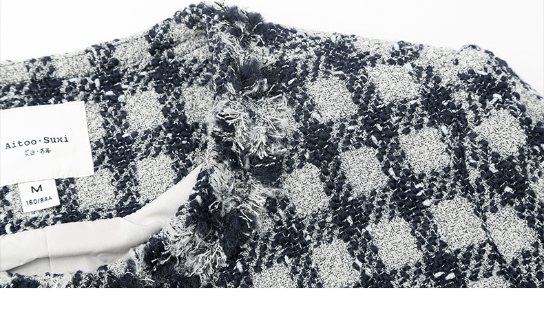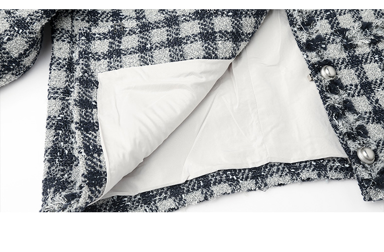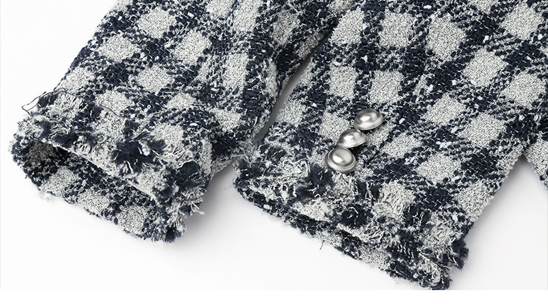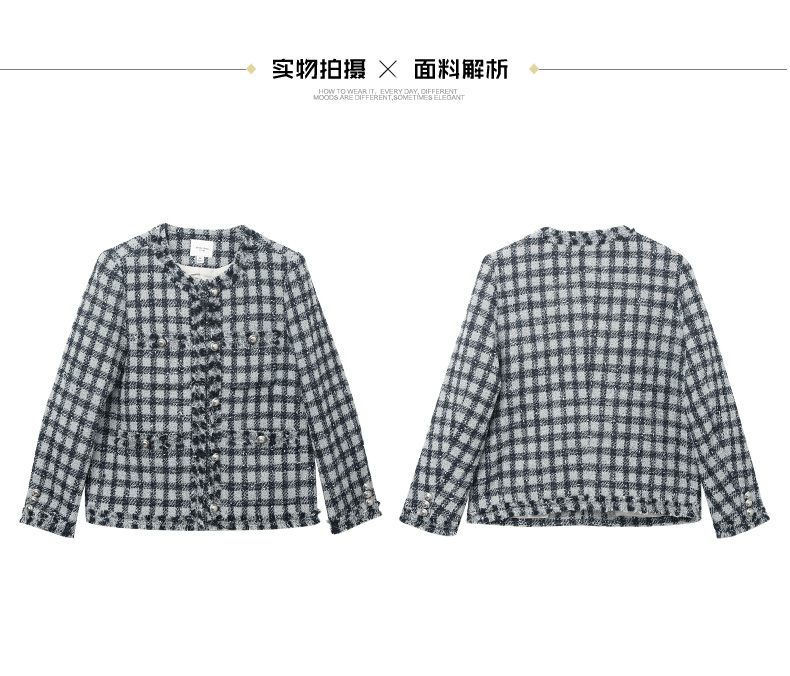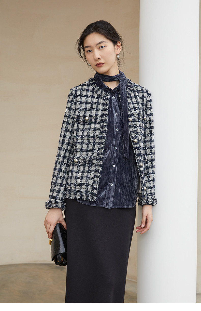 黑白格纹粗花呢小香风外套 流苏边金属扣短款夹克 复古优雅秋冬气质上衣
