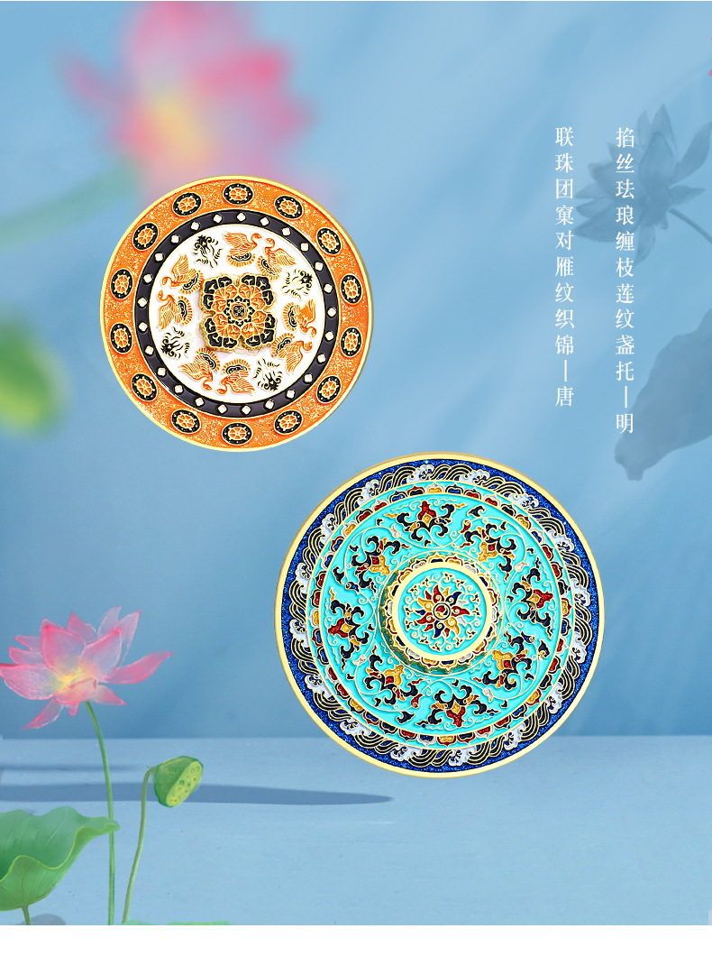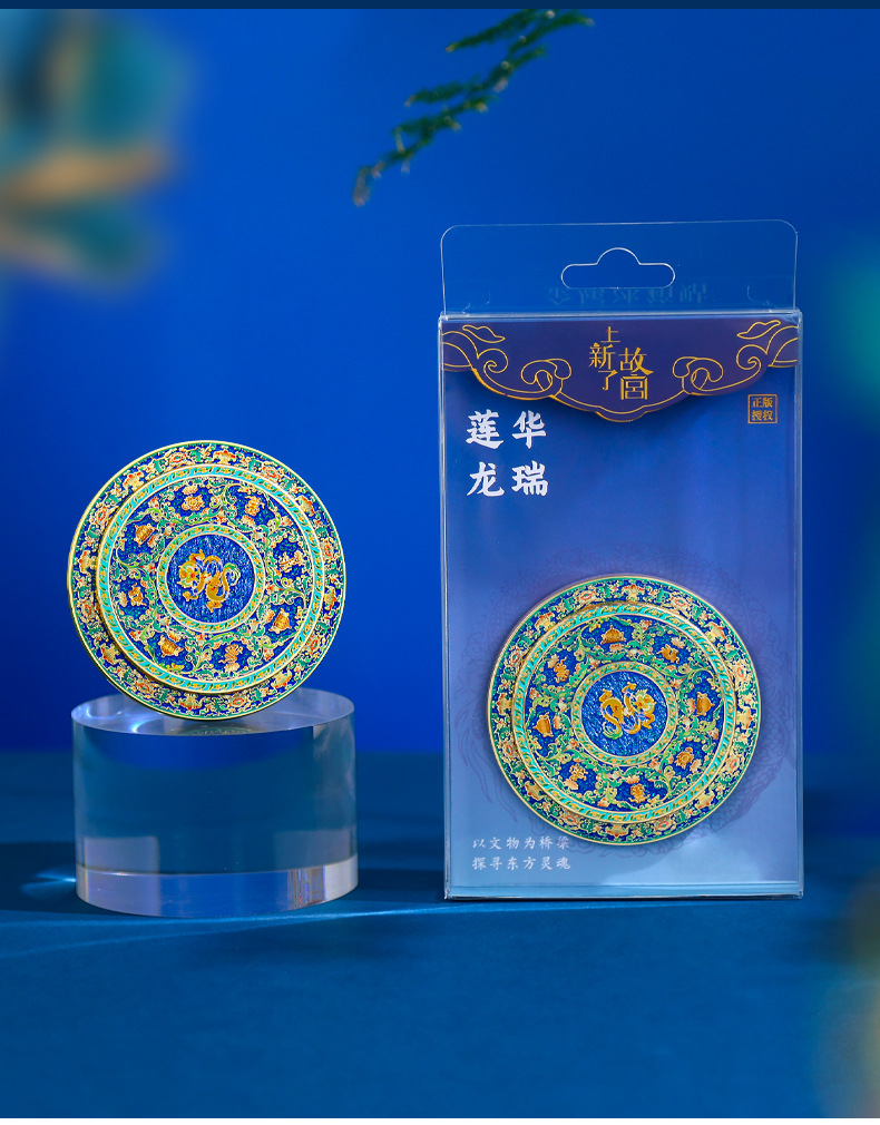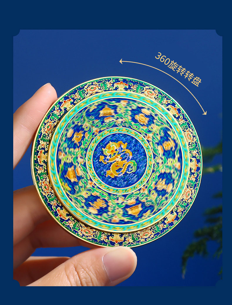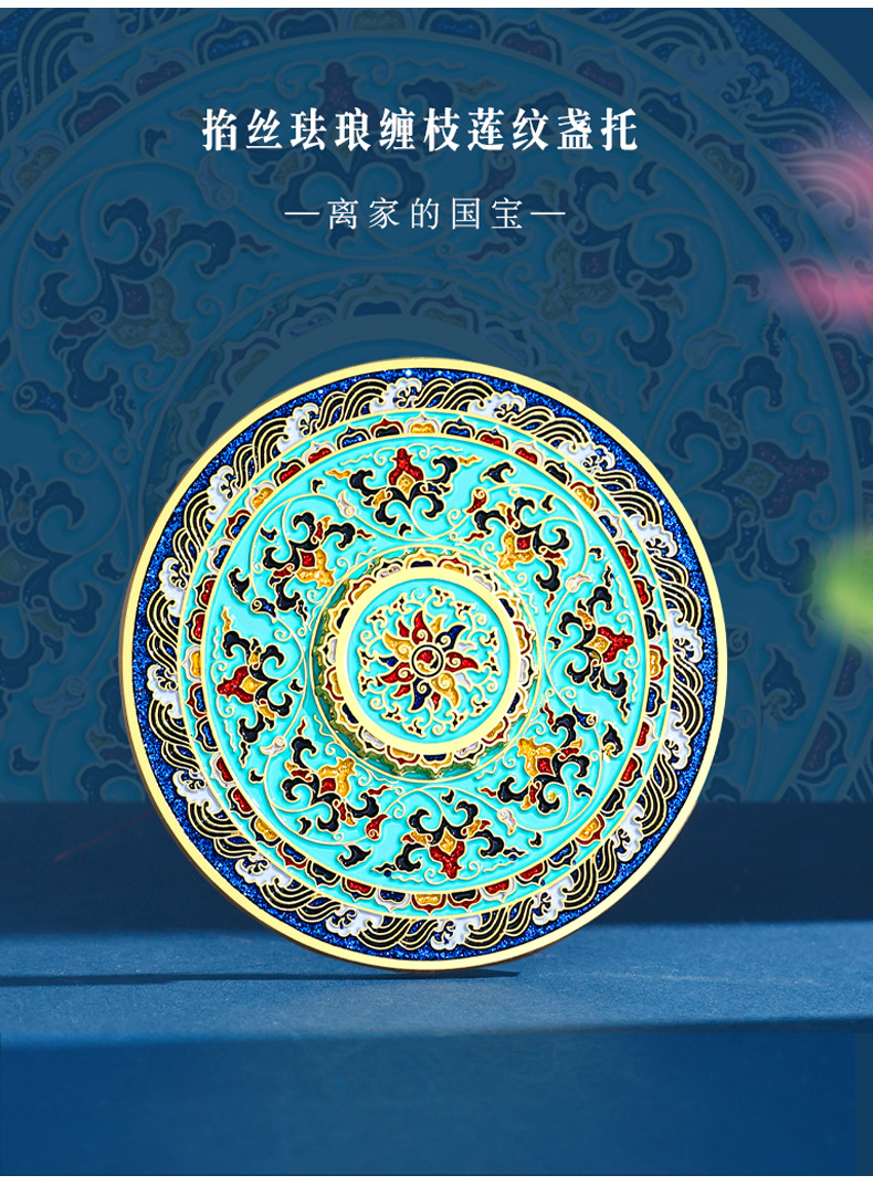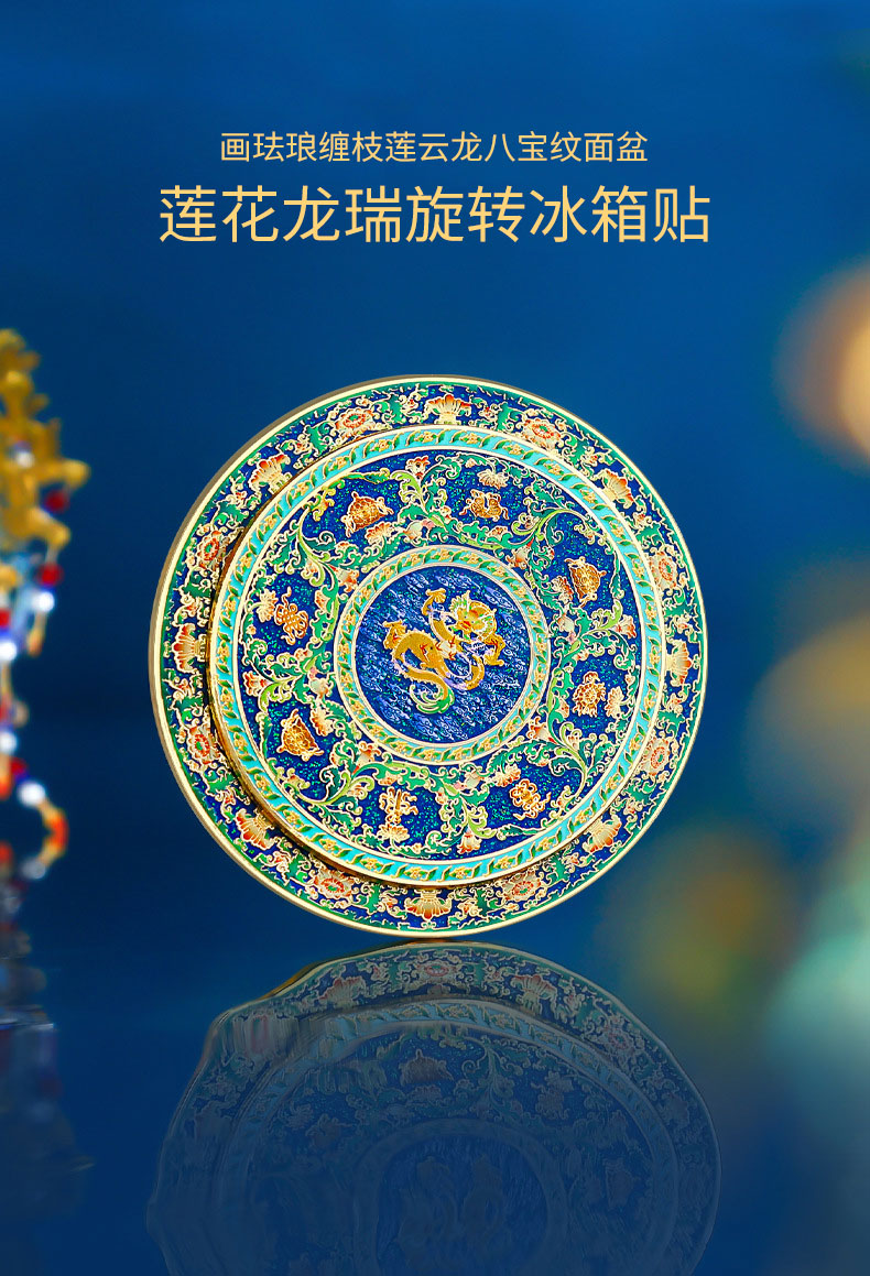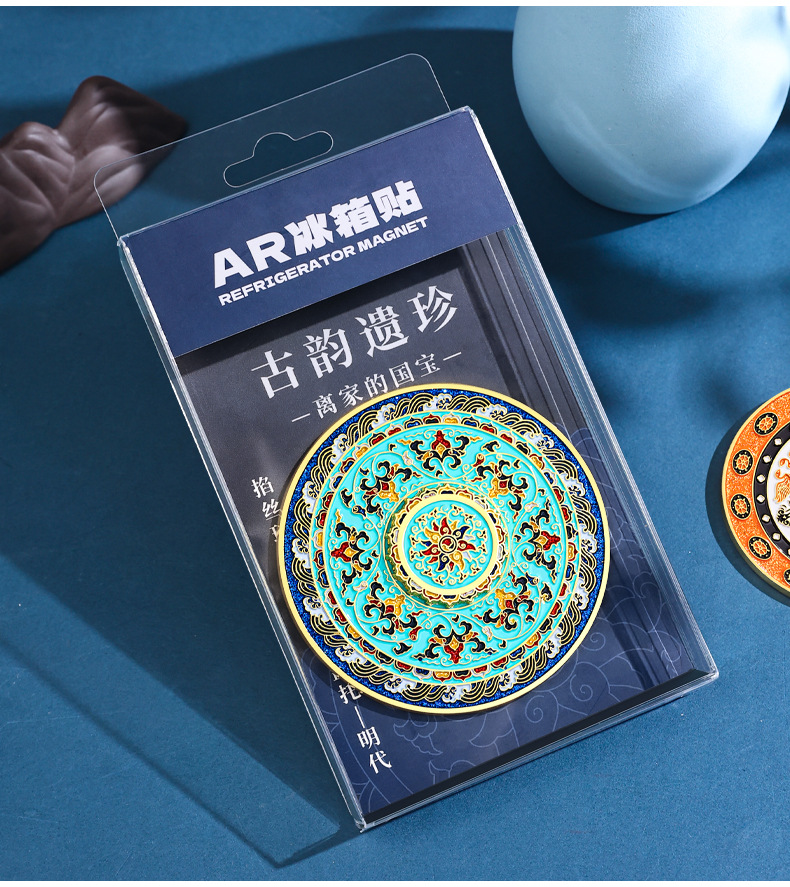 可以旋转的国宝金属冰箱贴古韵遗珍冰箱贴缠枝莲纹盏托AR冰箱贴