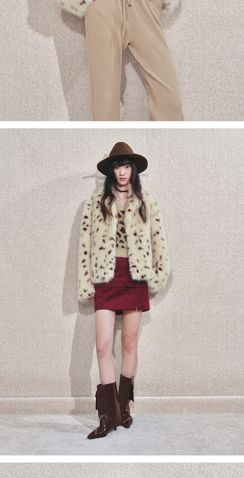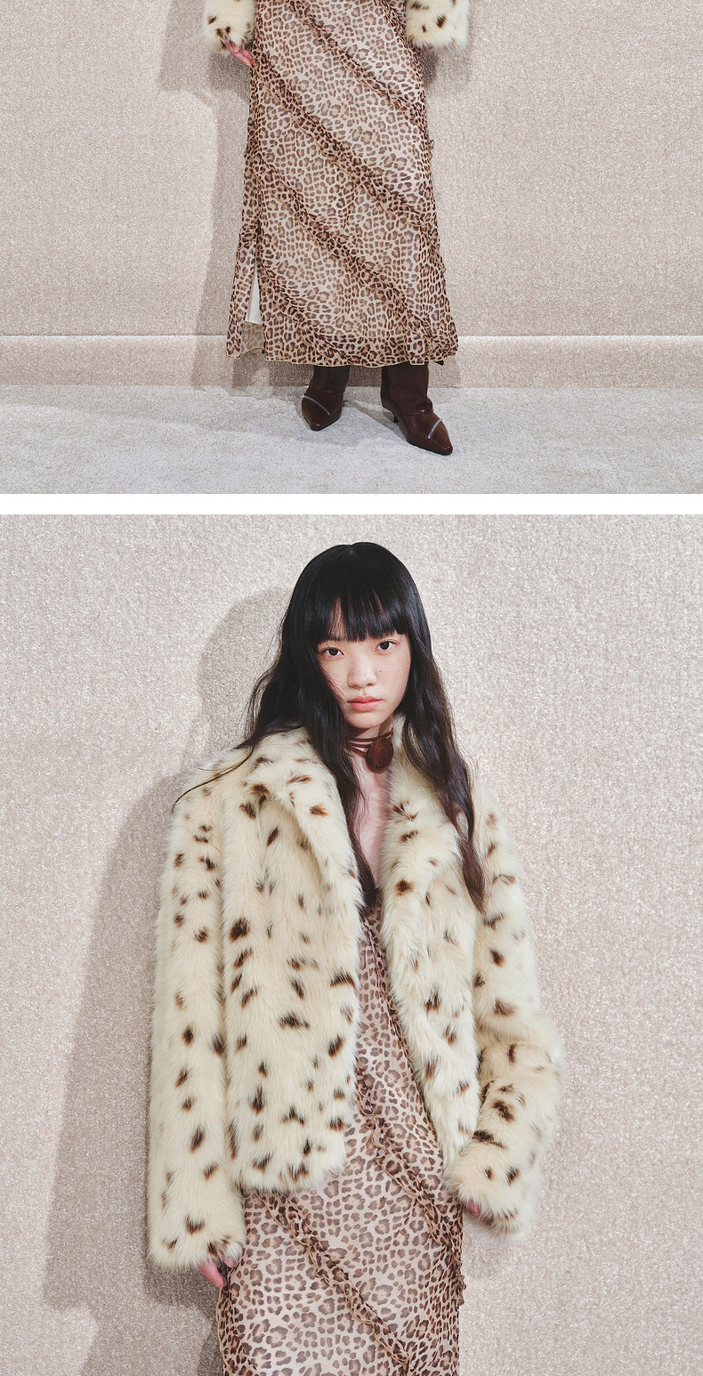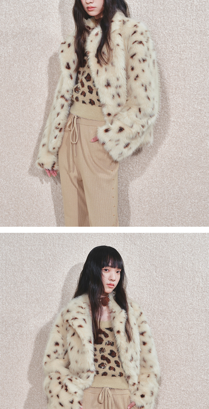 【冬日逸境-商场同款】MAXRIENY复古豹纹环保皮草外套女24冬新款(货号:MC85JA803)