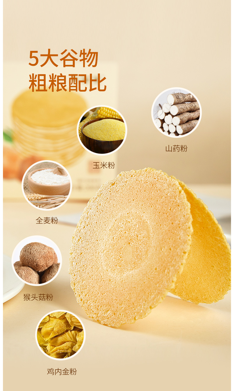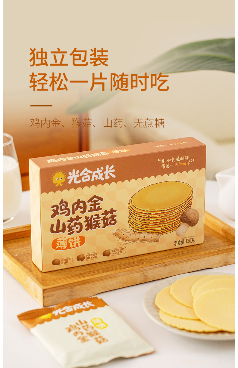 优选 |光合成长 鸡内金山药猴菇薄饼 轻薄酥脆 营养健康 独立包装 130g/盒