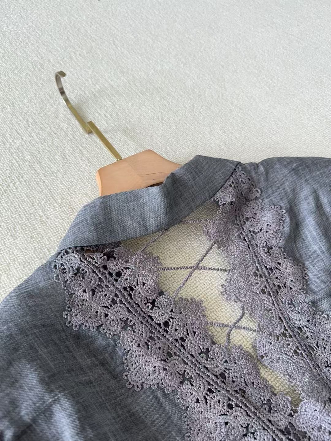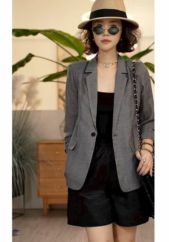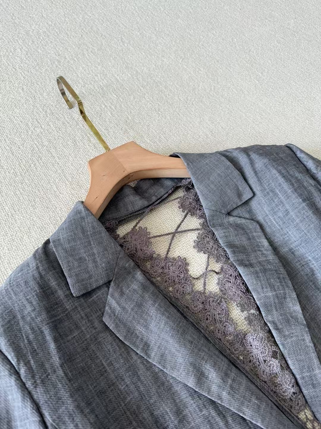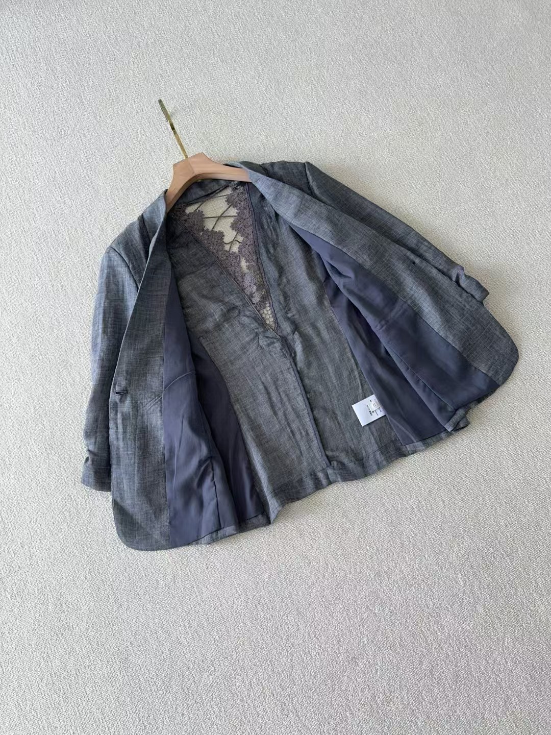 TH*苎麻莱赛尔蕾丝设计感七分袖小西装,面料还自带一种随性慵懒的感觉,妥妥提升你的气质哦~