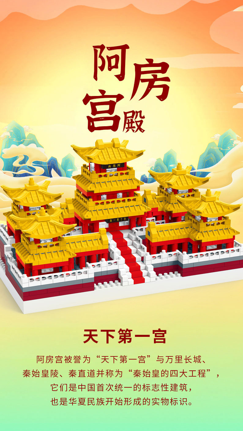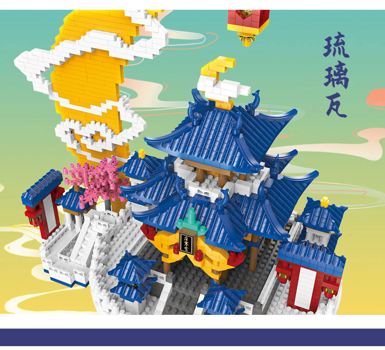 【中国名建筑积木玩具】广寒宫黄鹤楼天安门万里长城苏州园林立体积木儿童玩具