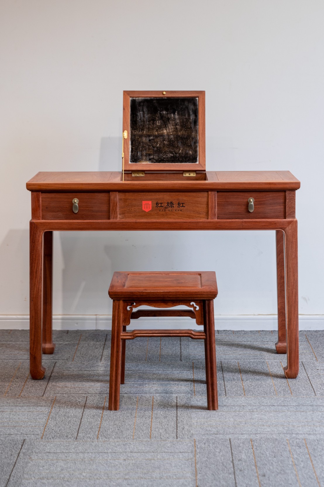 以传统文房实用器经改良而成卧室、闺房梳妆之用,亦可兼做小书桌、小课桌使用。