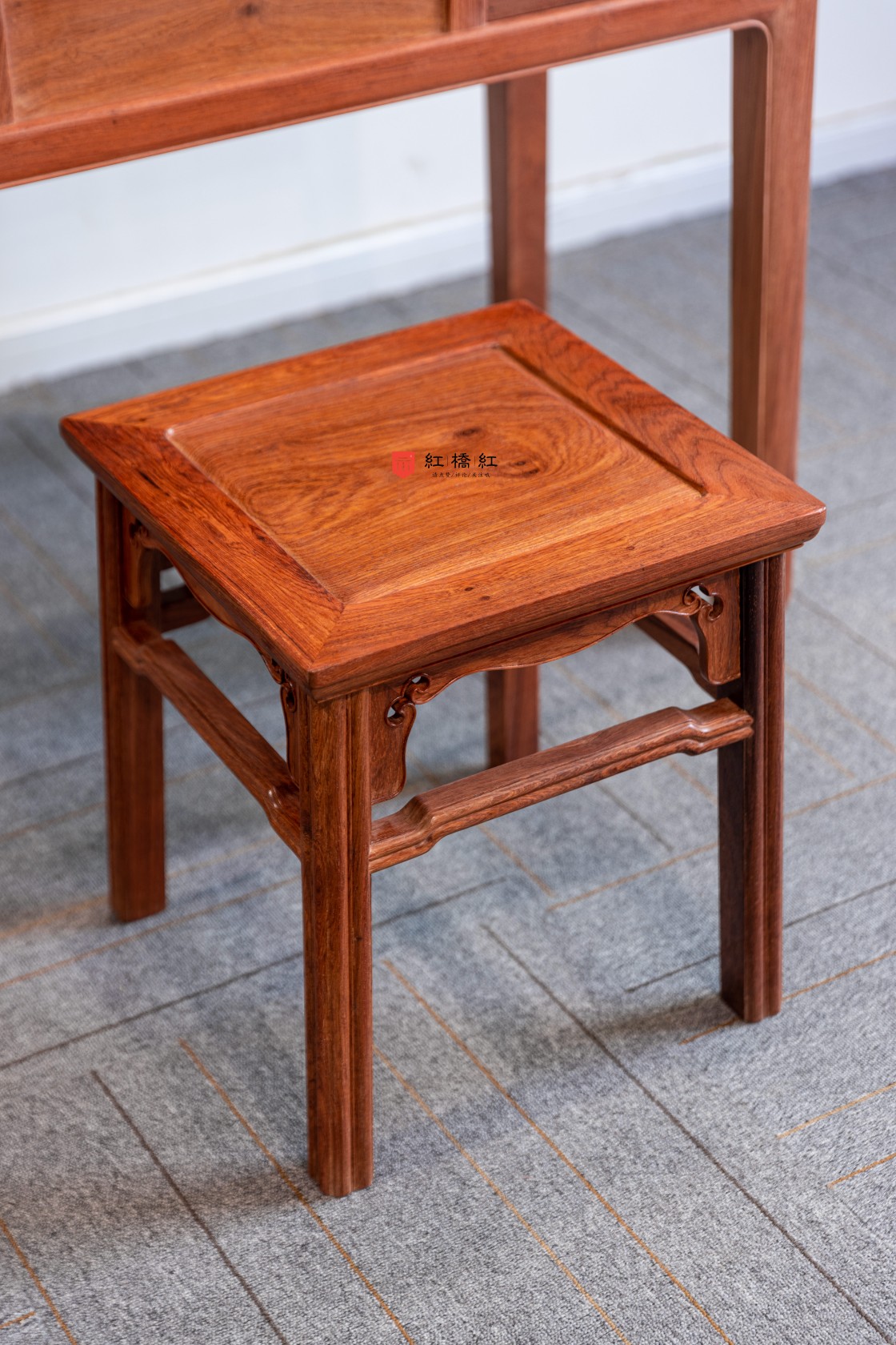 器物虽不大,用材却十分厚实,搭配马蹄腿方凳、瓜棱腿方凳,占地不大,十分灵活。