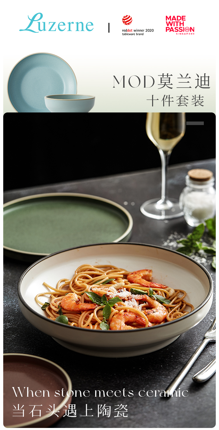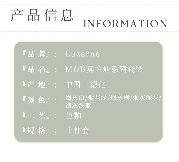 Luzerne陆升陶瓷MOD系列烟灰色套装10件套(5色可选)礼盒装