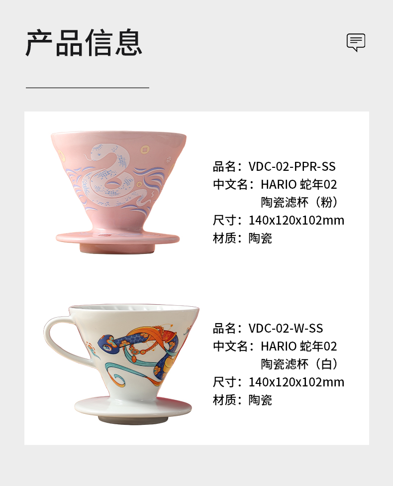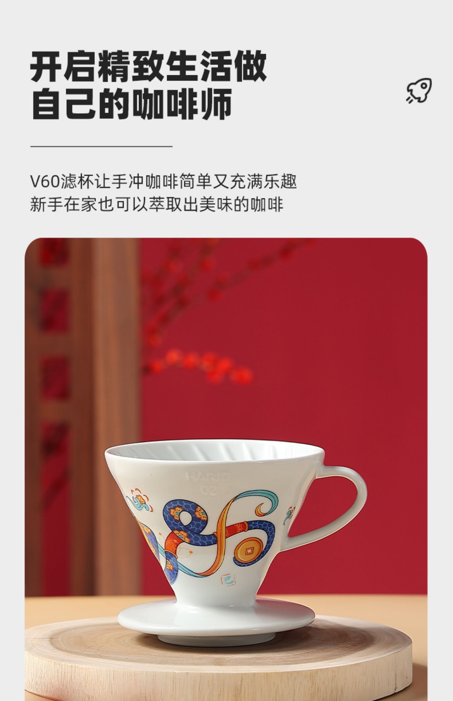 【HARIO】蛇年限定款V60陶瓷滤杯滴漏式手冲咖啡过滤杯VDC