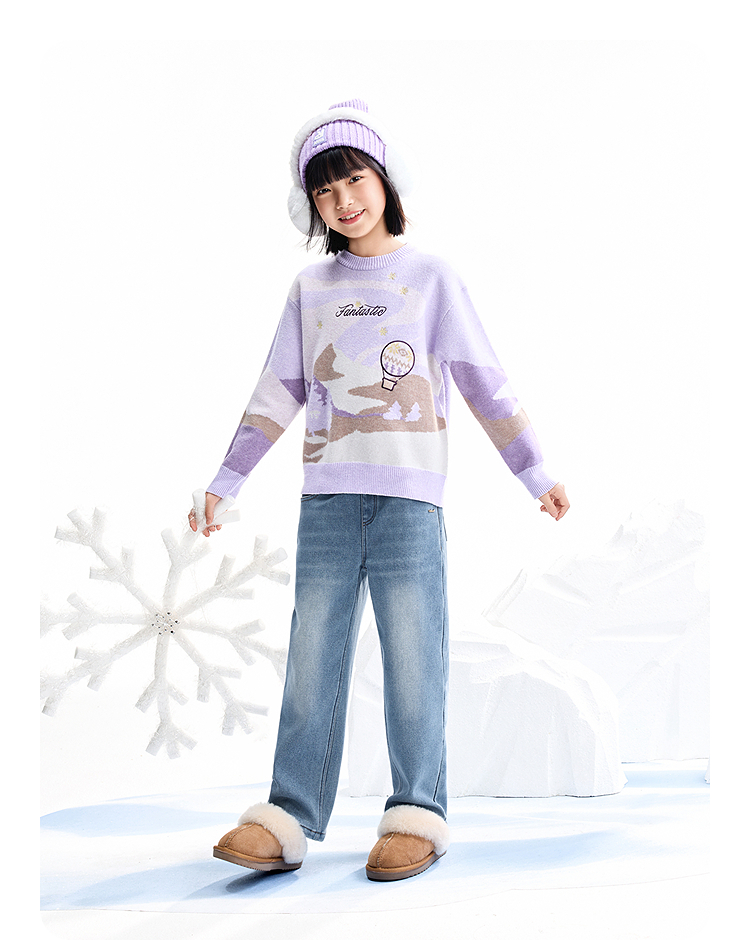 【实体店同款】女童长袖针织衫冬季新款安奈儿童装AG544058