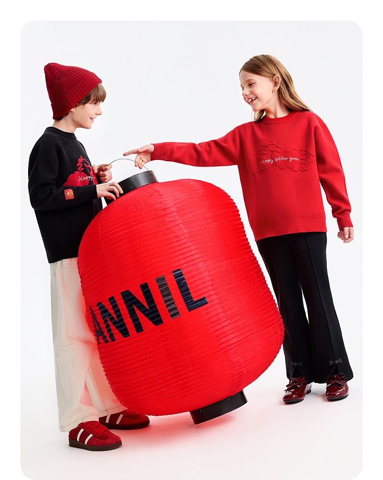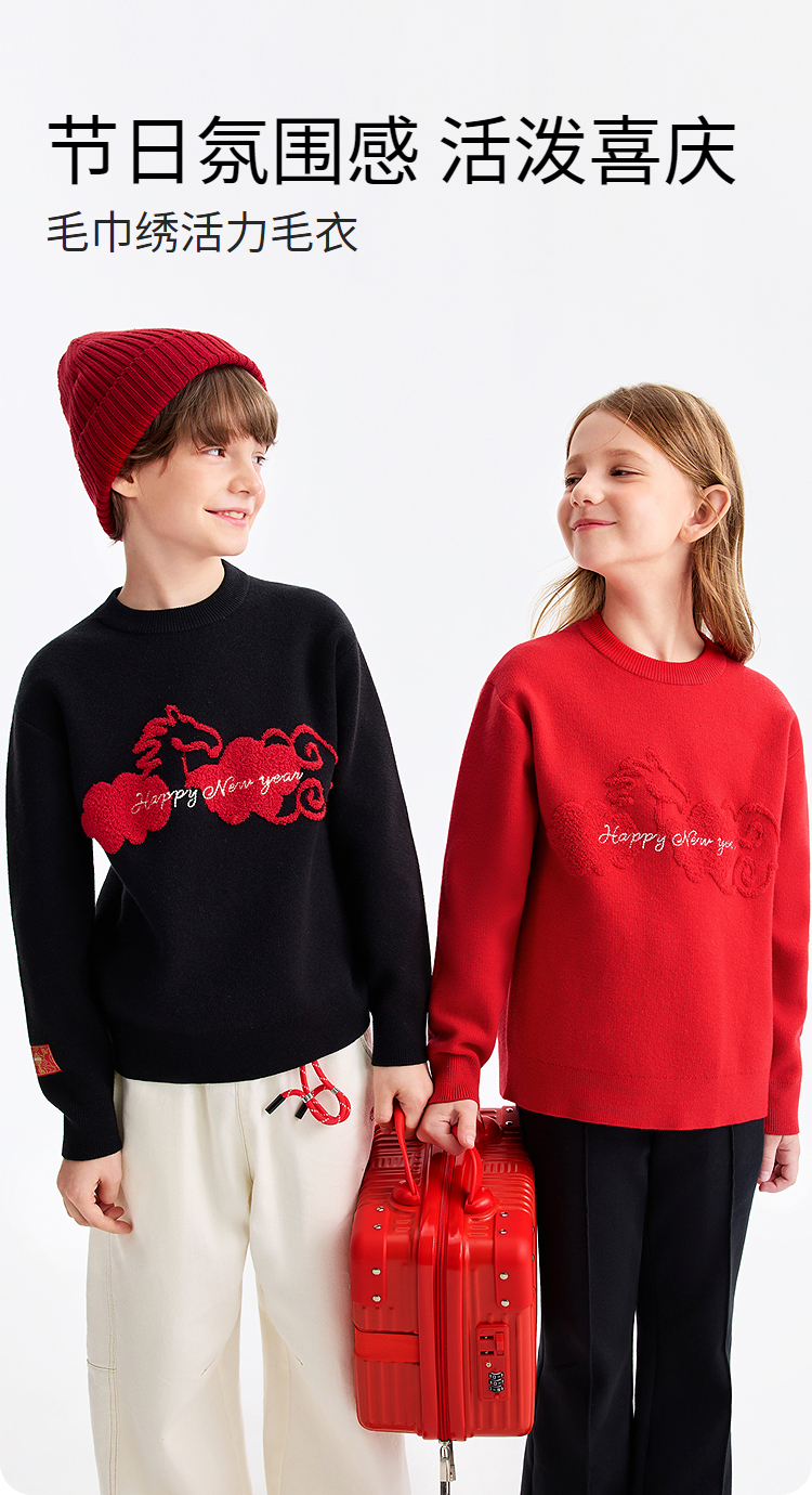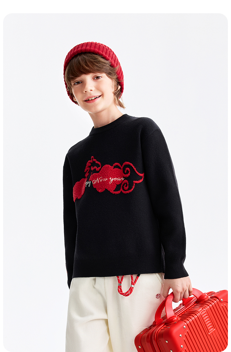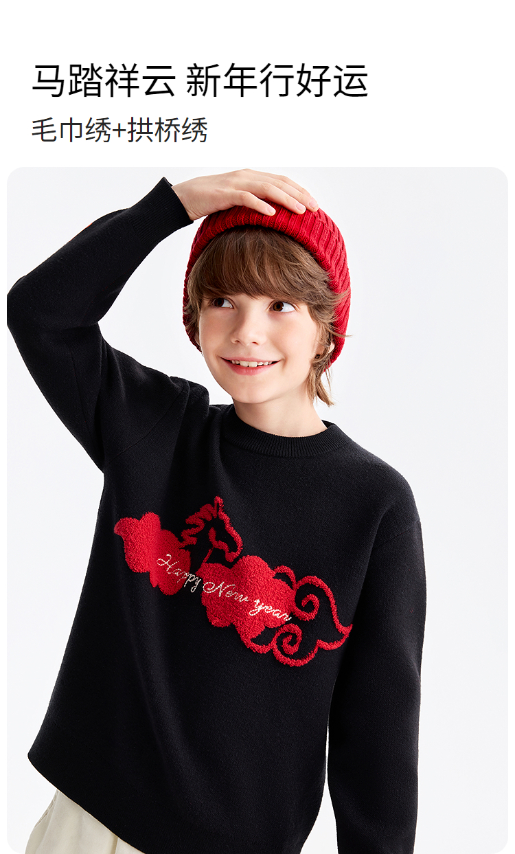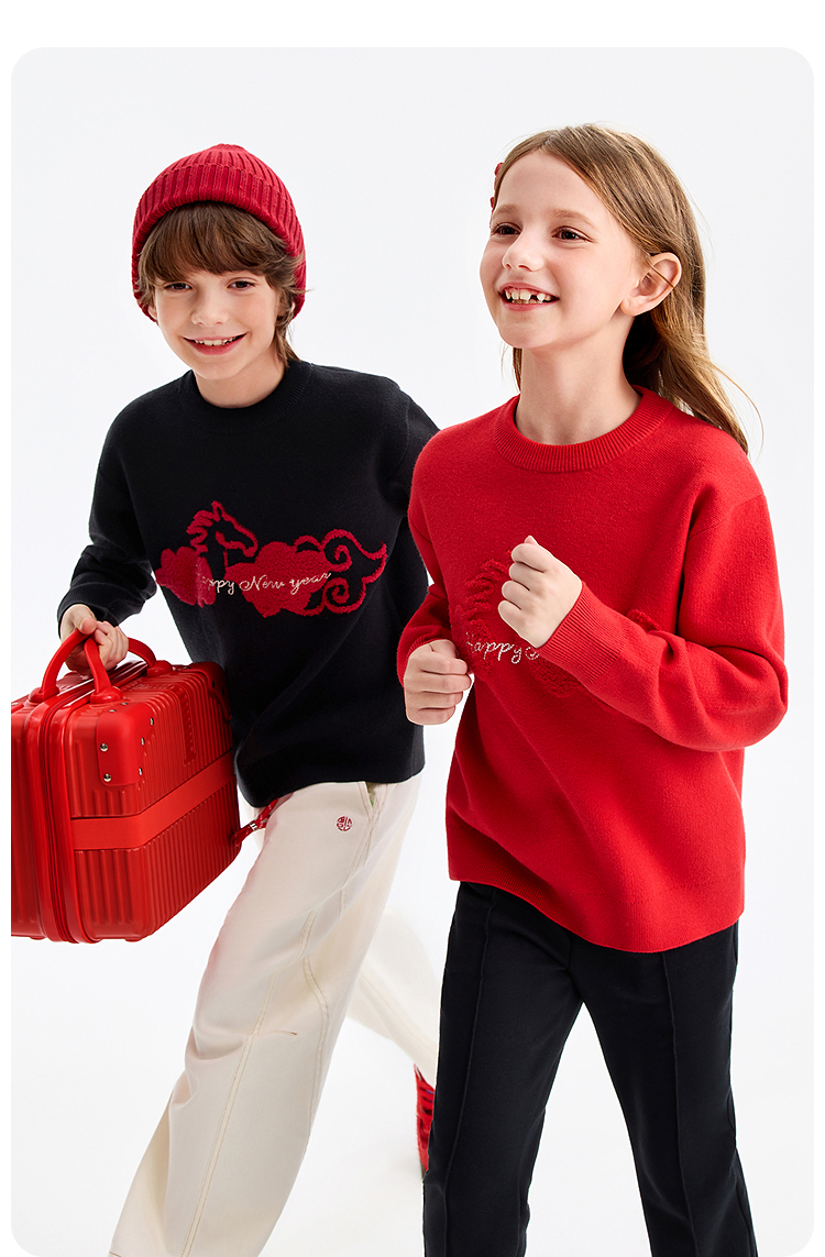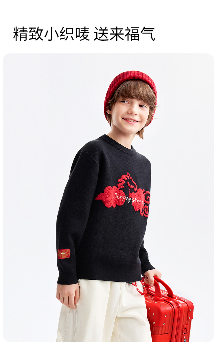 【新年波】男女童圆领长袖针织衫春季新款安奈儿童装EM614512