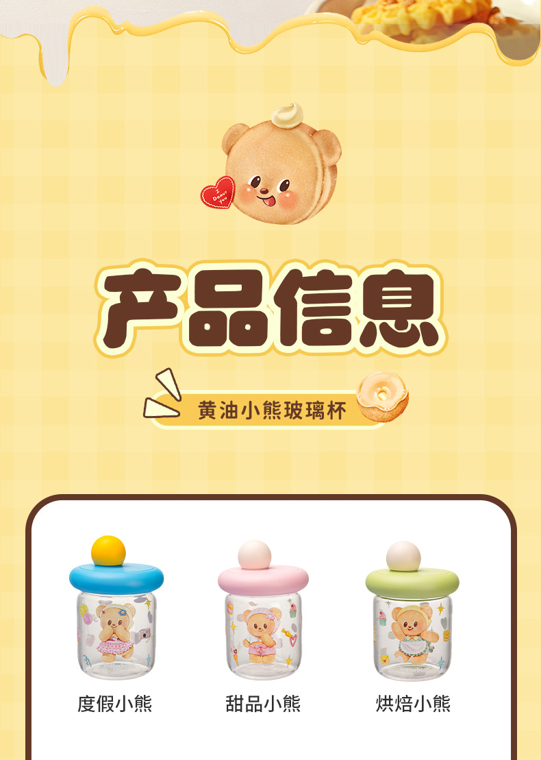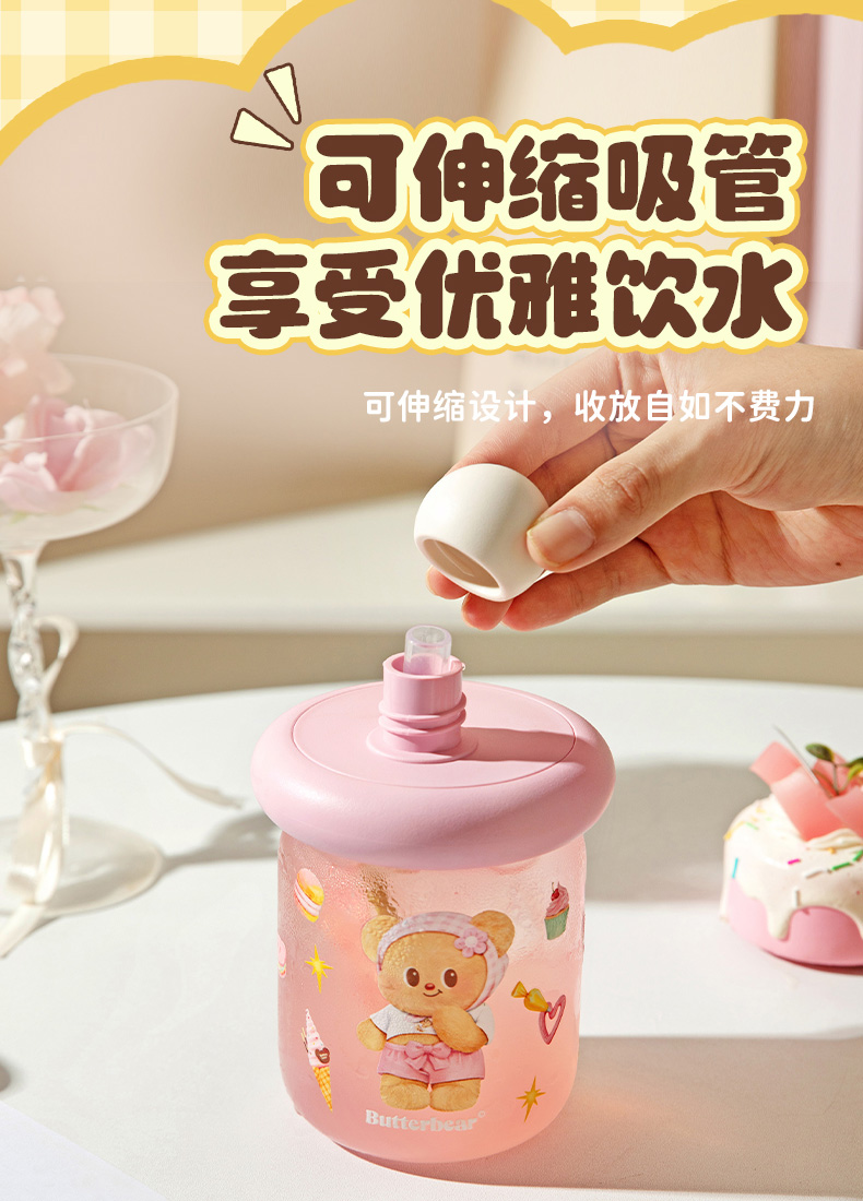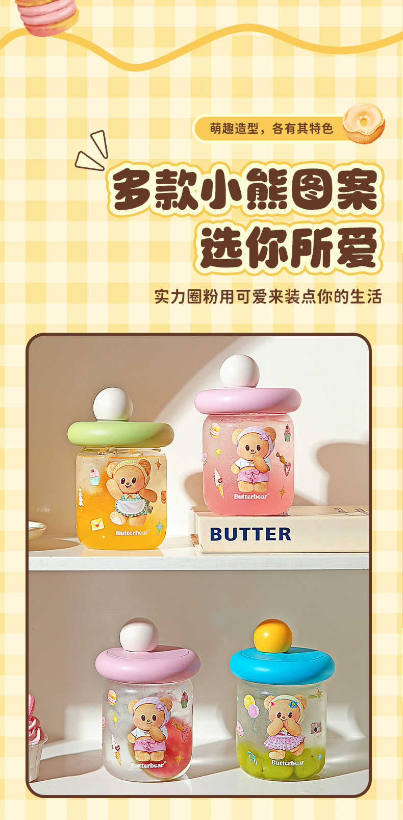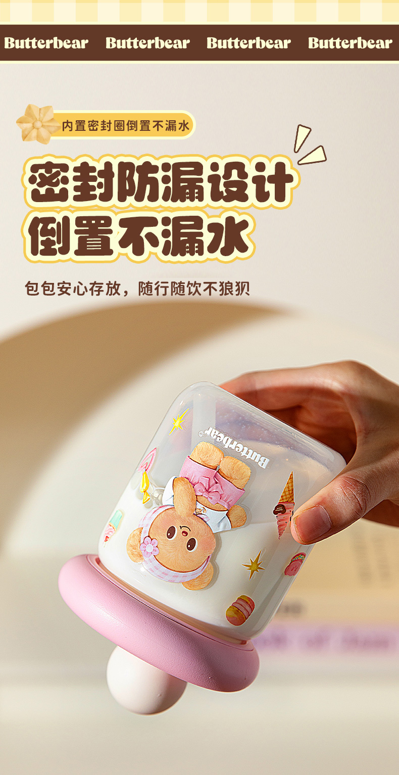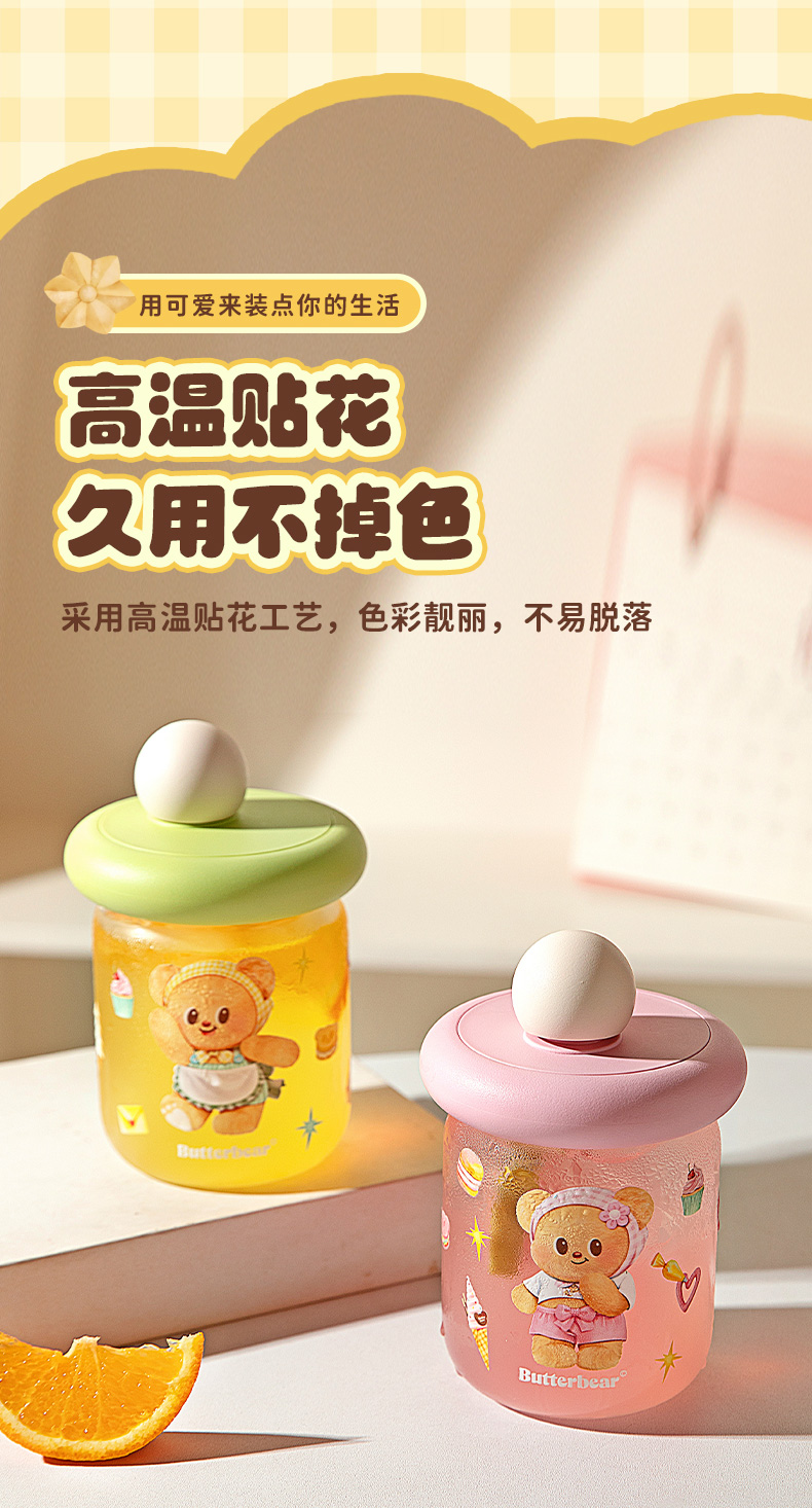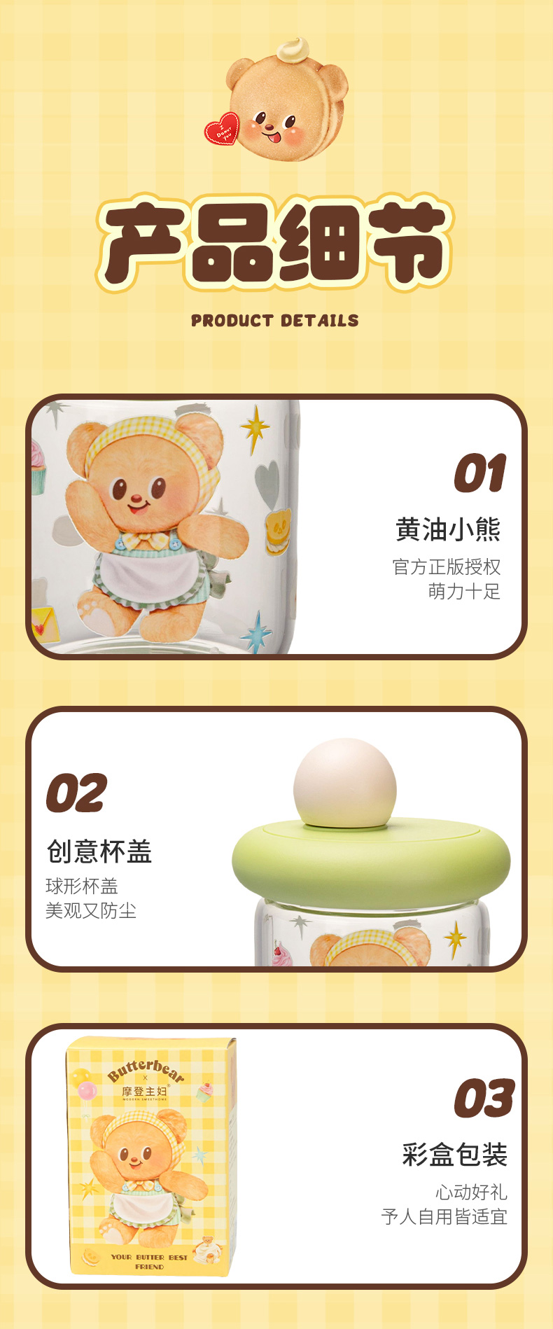 摩登主妇黄油小熊玻璃水杯带盖吸管杯家用杯子果汁杯咖啡杯